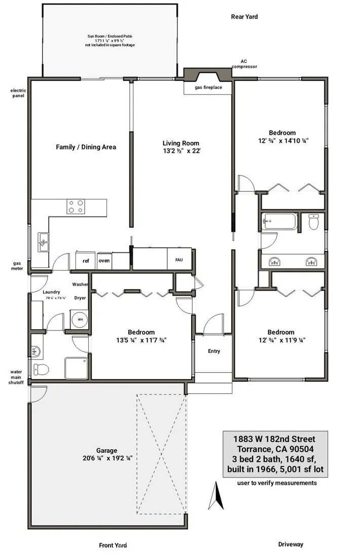 Clean & well maintained by decades long family owners. See to appreciate. Desirable floor plan. Priced to sell, move in now or ready for remodeling. Forced air heating and AC has been updated. Nice sun room off family / kitchen area. Attached two car garage, room for driveway parking. Conveniently located near restaurants, banks, transportation, markets and 3 major freeways. Photos with furniture are virtually staged to show possibilities.