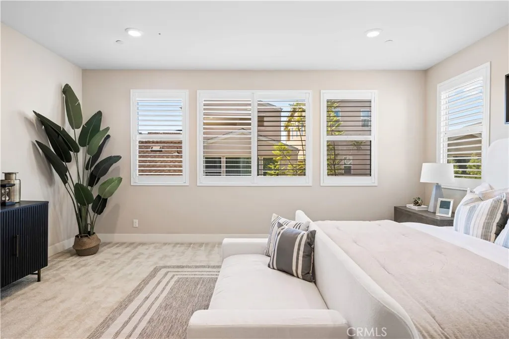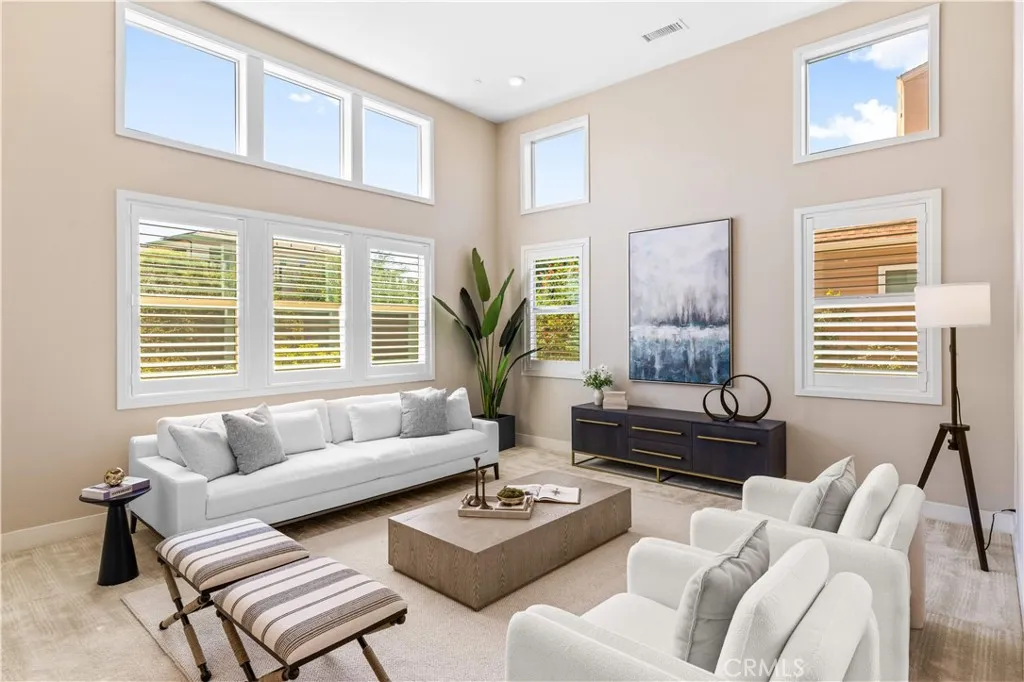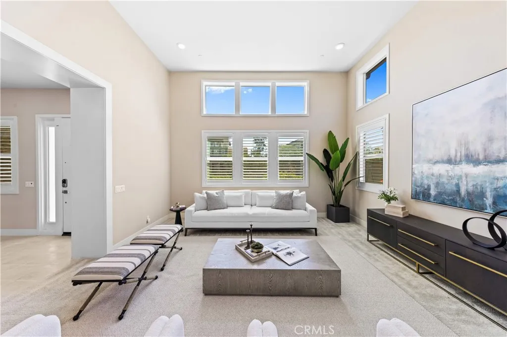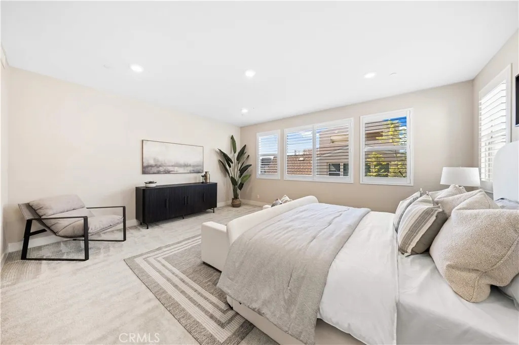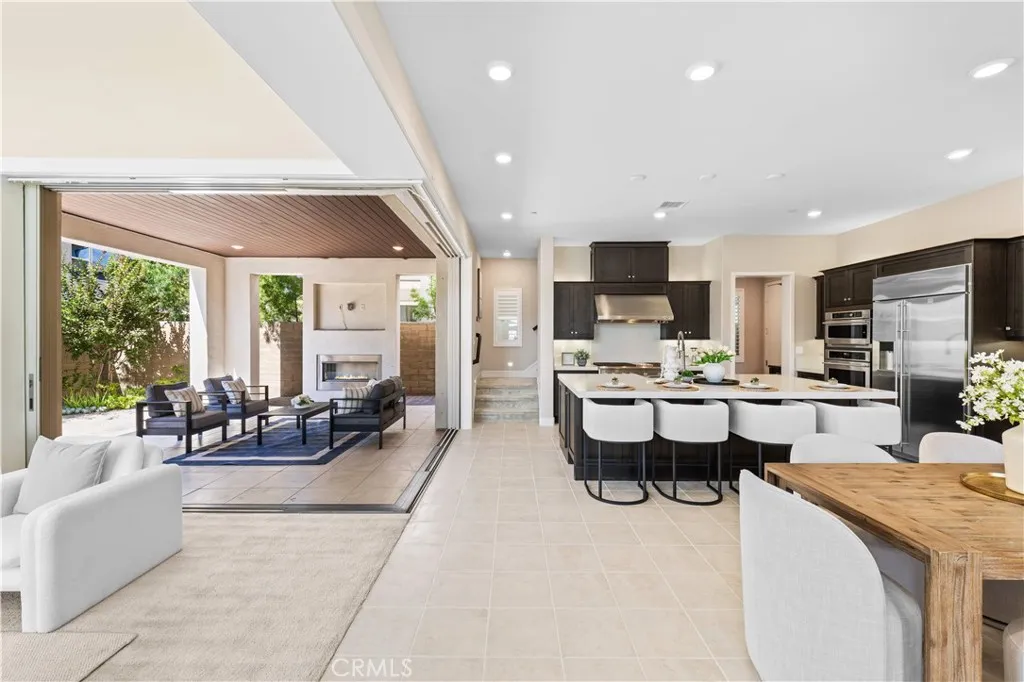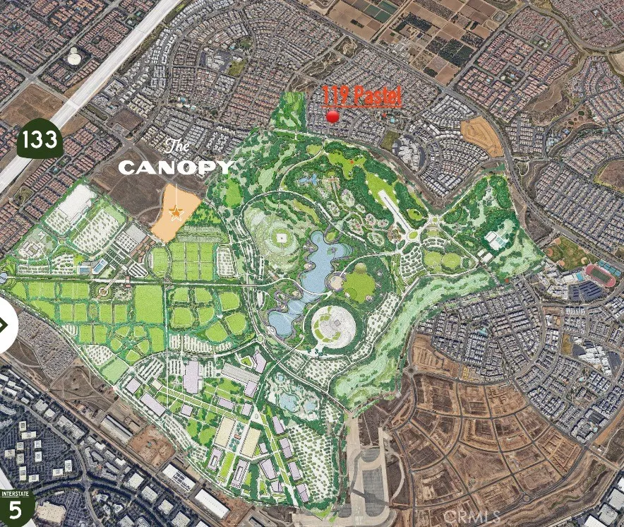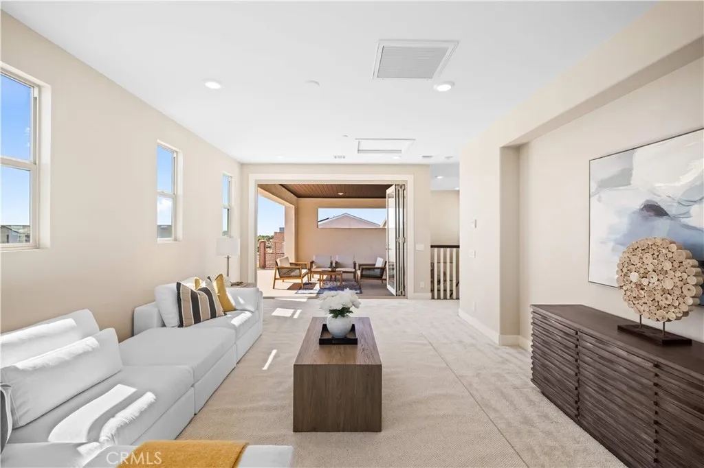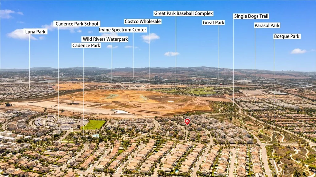 BIG CORNER LOT! PERFECT LOCATION! DRIVEWAY! Across the future botanical garden and lakes in Great Park! Only a couple of minutes walk to Great Park Bosque trail, to K-8 Top IRVINE SCHOOL, to Cadence community park, to future botanic garden, lakes and all green belts! The brand new CANOPY shopping center with DaTongHua supermarket will be open in 2026 and it is also only a short walking distance away! This sunlit home offers exceptional location and a seamless connection to the outdoors. The main level is filled with natural light, featuring a spacious open-concept kitchen, dining, and living area that effortlessly flows into a private backyard through pocket sliding doors. The backyard also includes a built-in fireplace, creating a warm, inviting atmosphere for evening gatherings or quiet reflection. A downstairs bedroom and full bath provide convenience and flexibility for guests or multigenerational living. The powder room gives extra convenience and privacy! Upstairs on the second level, you'll find the serene primary suite with a spa-inspired en-suite bathroom, along with two spacious closets for her and him. Two generously sized secondary bedrooms each with its own full bathroom! The third floor opens to a bright and expansive loft with a powder room, offering endless possibilities as a media room, office, yoga room, kid's playroom or creative space. A very large private balcony invites you to relax and take in sweeping views of the neighborhood and the gentle hillside beyonda perfect spot for morning coffee or evening sunsets. With its rare corner location, perfect op