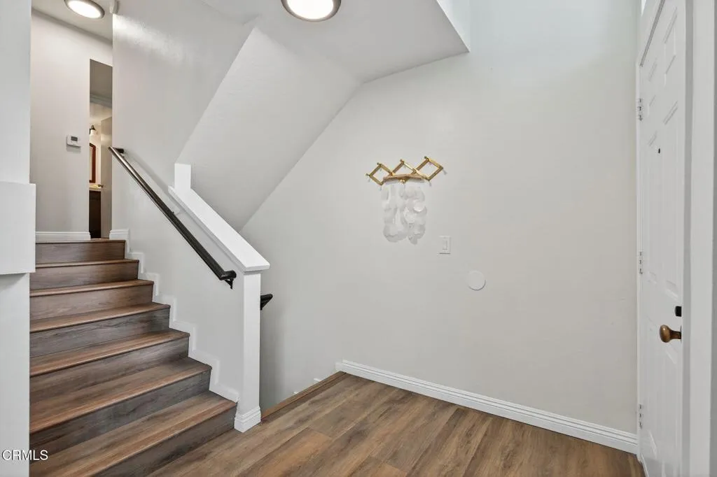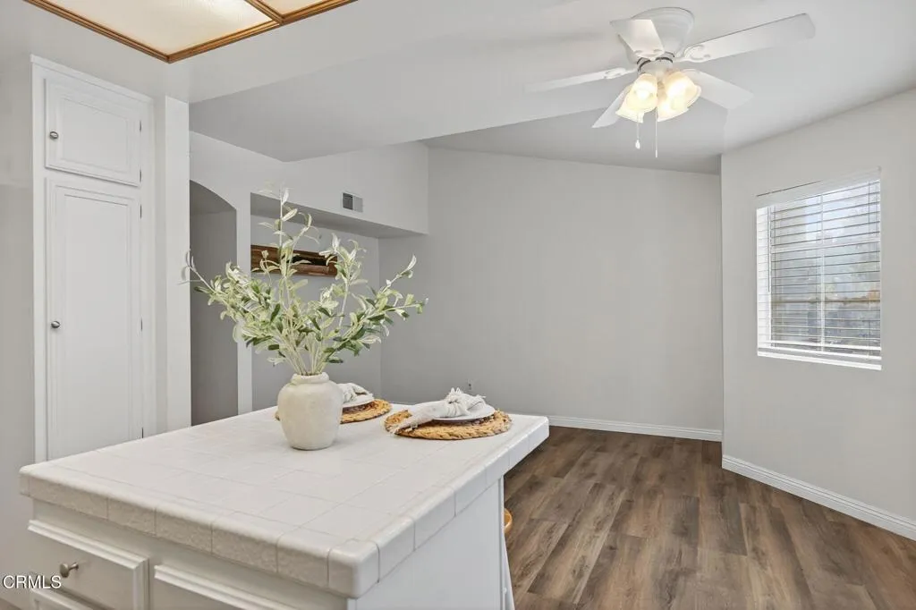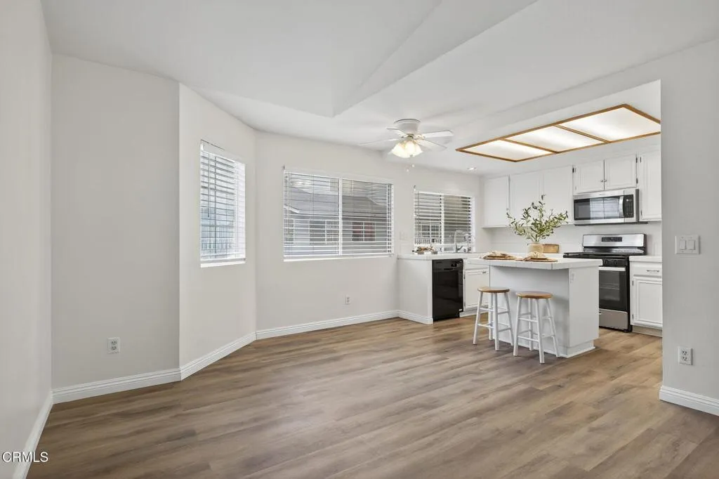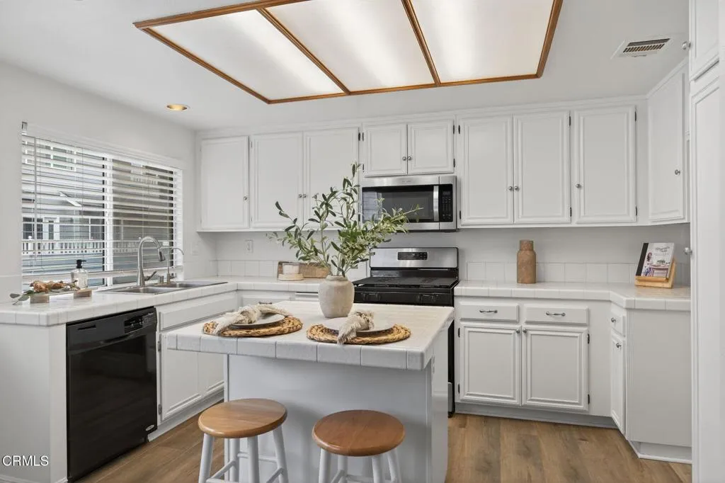 Welcome to this multi-level townhome in a prime Ventura location! This 2-bedroom, 2.5-bath home offers 1,463 SqFt of versatile living space and great community amenities.The living room features high ceilings, a cozy fireplace, and access to a private enclosed front porch. Just above, the dining area can also be used as an office or family room, with a convenient half bath for guests. The spacious kitchen includes an island, generous counter and cabinet space, and an open area ideal for a breakfast nook, coffee bar, or lounge space.Upstairs, both bedrooms offer high ceilings, ample closet space, and their own en-suite bathrooms filled with natural light. Additional highlights include a 2-car garage with direct access, HOA-completed roof and exterior painting, and community amenities including pool, spa, tennis courts, plus water included in dues.See this fantastic Ventura home today!
