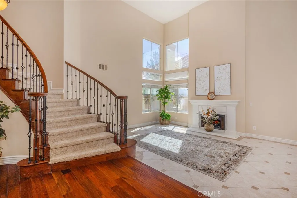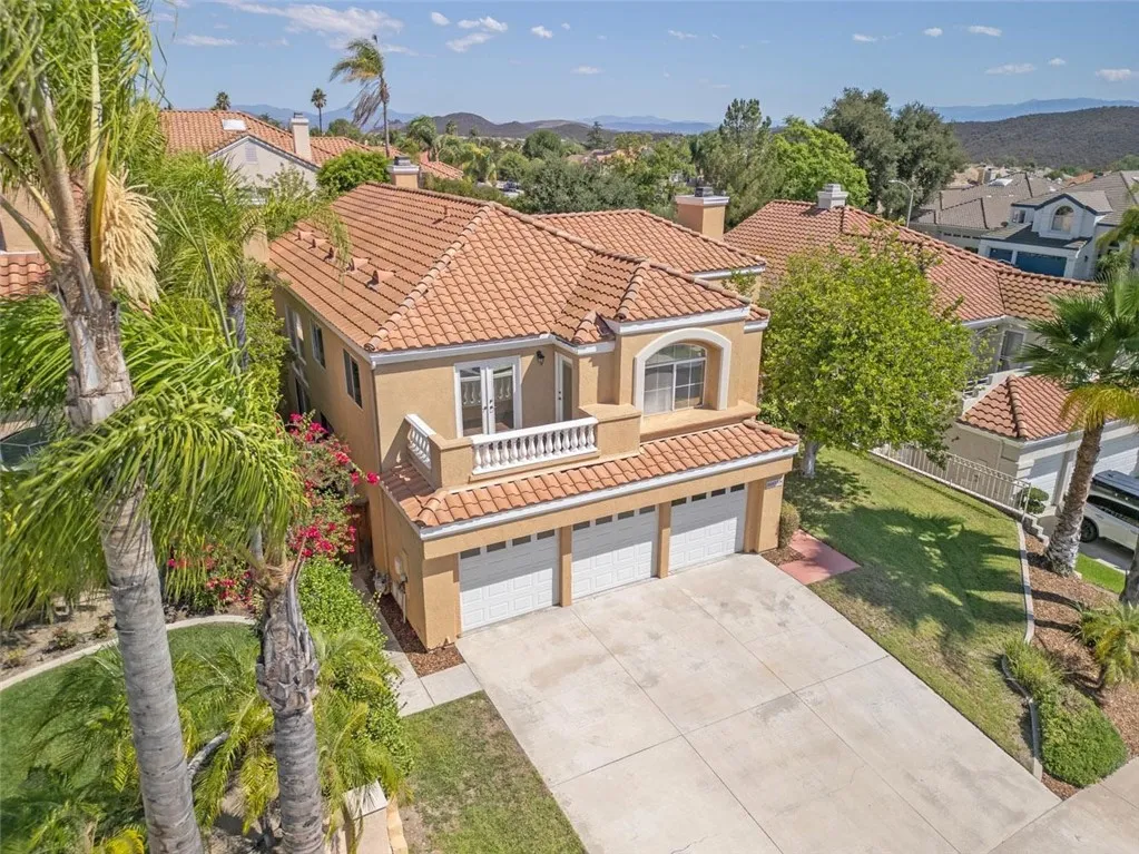 Welcome to this beautifully maintained 2-story home in the heart of Murrieta, offering 5 bedrooms, 3 full bathrooms & 3,176 sf of thoughtfully designed living space on a 7,841 sf cul-de-sac lot. This quality-built home is located in one of Murrieta's most desirable neighborhoods, Corta Bella, known for its family friendly atmosphere, well-kept surroundings, & convenient access to everything the area has to offer. The curb appeal shines with an inviting exterior, mature landscaping & a spacious 3-car garage. Step through the front door & you are greeted by a stunning curved wooden staircase that sets the tone for the elegance & craftsmanship of the home. Rich dark hardwood floors in the entryway create warmth & contrast beautifully with the neutral colors found throughout. The formal living room offers a cozy fireplace & high ceilings, making it an ideal space for entertaining. Adjacent to the living room is a spacious dining room, perfectly suited for holiday dinners & celebrations. The family room, featuring its own fireplace, flows seamlessly into the kitchen, creating a welcoming open-concept layout, perfect for family gatherings. The chef's kitchen is a standout feature of this home. With granite countertops, dark wood cabinetry, DBL ovens, built-in range, a large center island & a huge walk-in pantry, it offers both beauty & practicality. Downstairs, you'll also find a full bathroom & a generously sized bedroom, ideal for guests, in-laws, or a home office. Upstairs, the thoughtful design continues with 4 spacious bedrooms. The primary suite is a private retreat with it