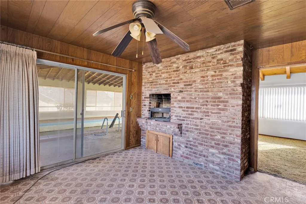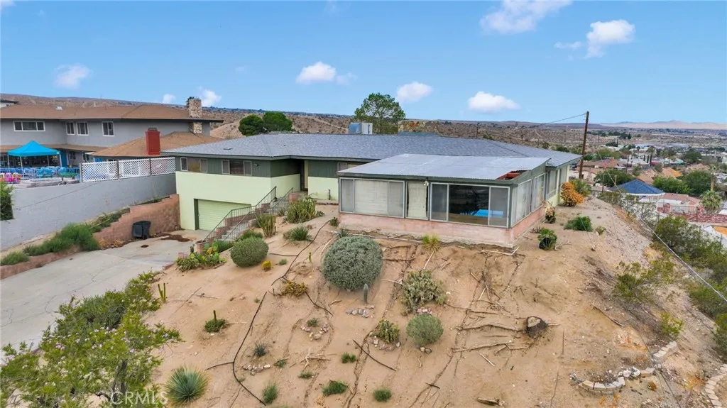 Calling all visionaries! This 3-bedroom, 2.5-bath home sits on a generous lot and offers endless potential for the right buyer. With vintage charm throughout, the home features wood-beamed ceilings, a stone fireplace, and mid-century touches waiting to be brought back to life. The kitchen showcases retro finishes, wood cabinetry, and large windows that flood the space with natural light and sweeping desert views. A spacious enclosed patio/sunroom with a pool adds valuable square footage and flexibilityperfect for future entertaining, hobbies, or a lounge area. Downstairs, the attached two-car garage includes not only additional storage space, but also a convenient powder room. Set on a sloped lot landscaped with desert-friendly vegetation and a wide driveway, the property provides ample room for parking, gardening, or expansion. This is a great opportunity to restore a classic Barstow home with vintage character, and standout amenities. Sold as-is. Buyer to conduct their own due diligence.