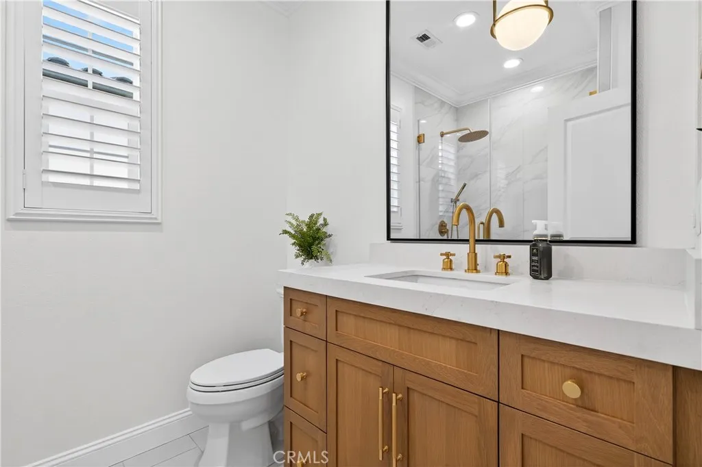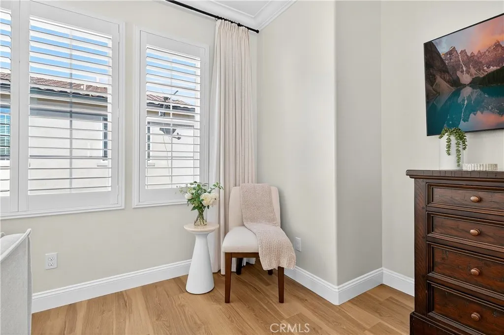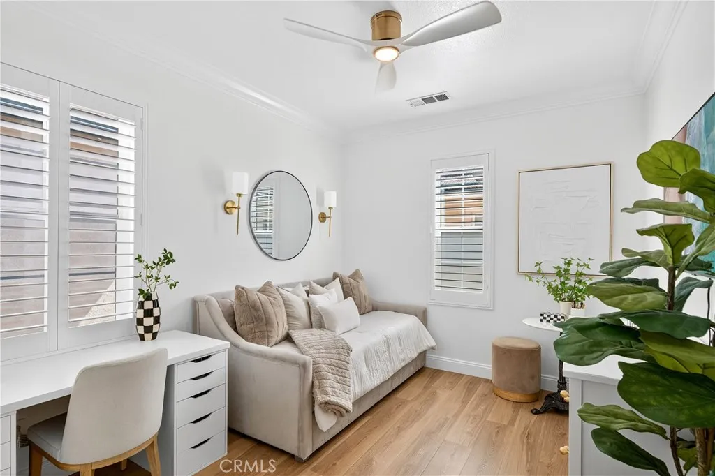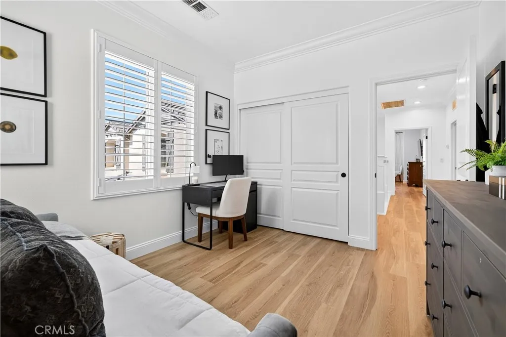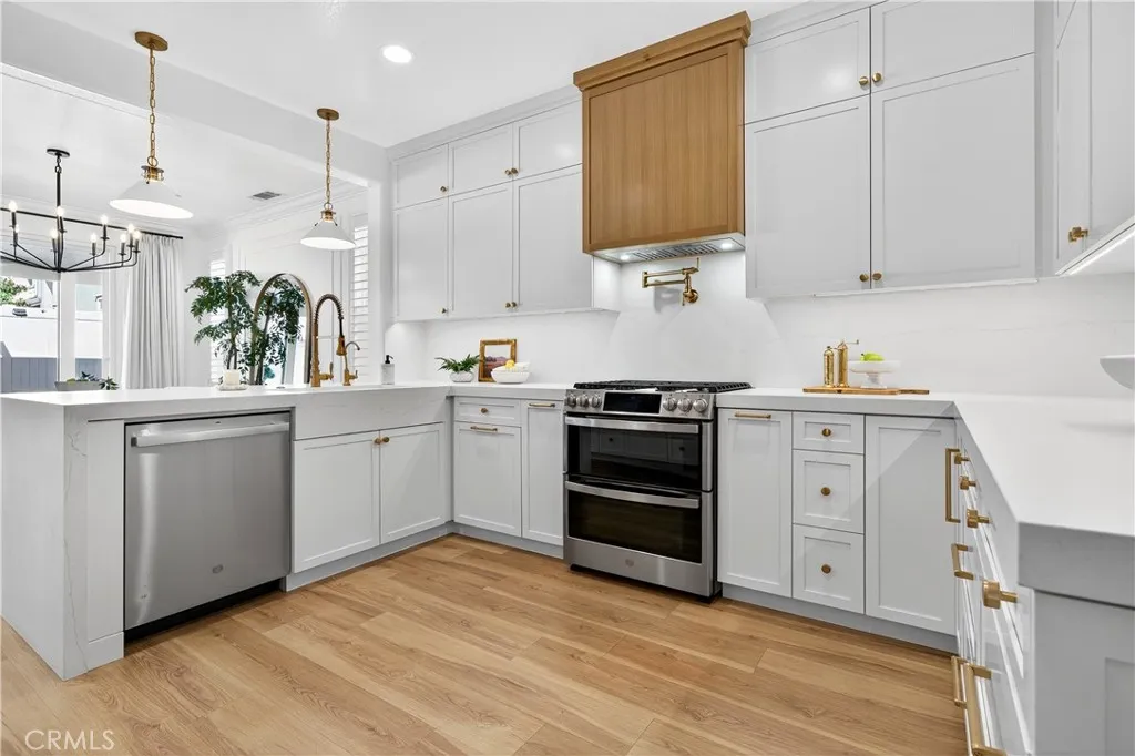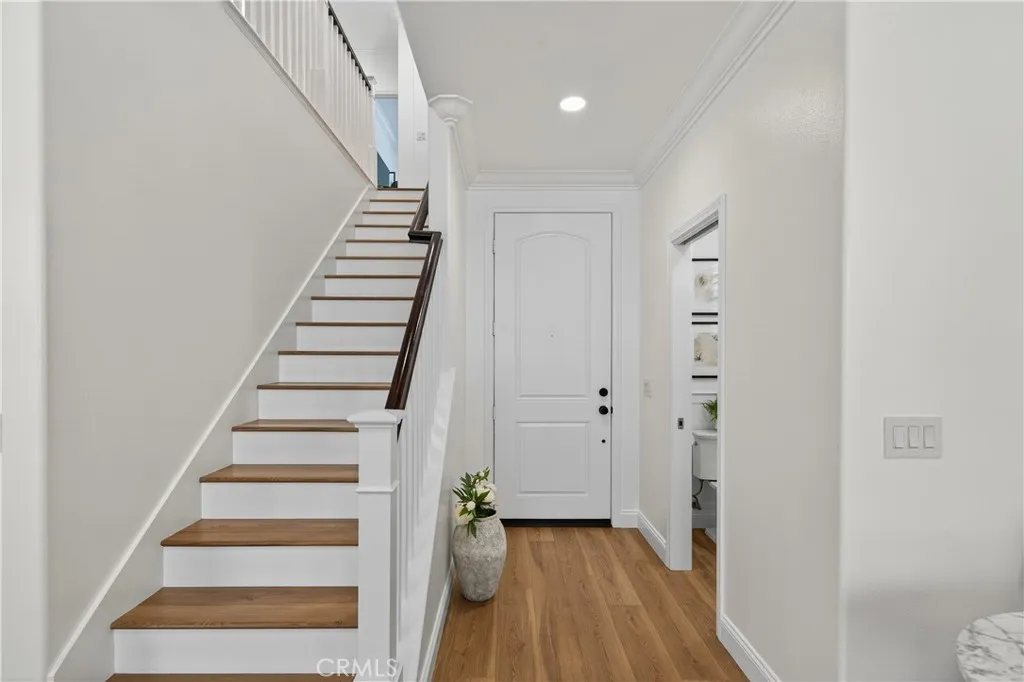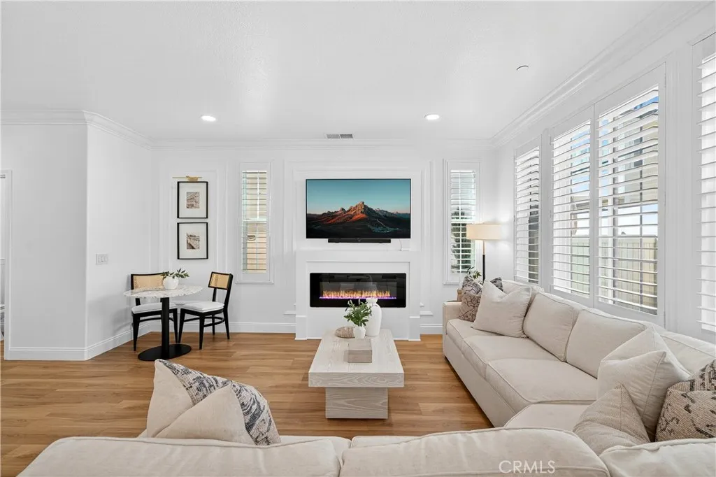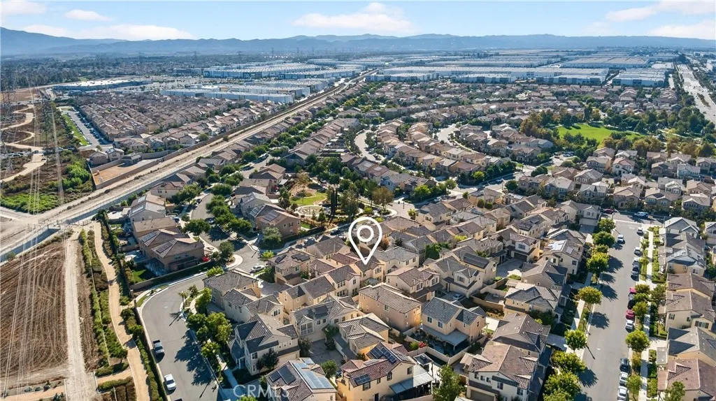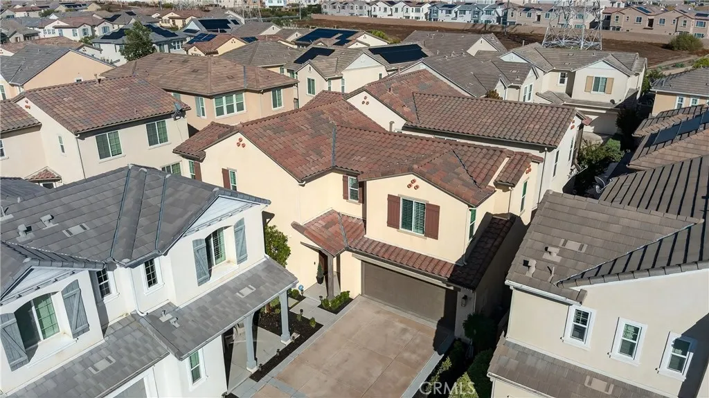 Step into luxury and modern elegance in this beautifully upgraded home located in the sought-after Parkplace neighborhood of Ontario Ranch. This stunning residence is filled with premium features and thoughtful design throughoutperfectly blending comfort, function, and contemporary style. Inside, you'll be greeted by newer neutral wood laminate flooring, crown and base molding, and shutters throughout that add timeless appeal. The remodeled chefs kitchen is a true showstopper, boasting quartz waterfall-edge countertops, under cabinet outlets, pendant lighting, an apron sink, open shelving, soft-close cabinets and drawers, custom slide-out organizers, a GE Profile stove with built-in air fryer, motion sensor hood, pot filler, wine fridge, under-cabinet lighting, and a butlers pantry for seamless entertaining. There's even a reverse osmosis water system under the sink for added convenience. Enjoy beautiful modern light fixtures, light dimmers throughout, and ceiling fans, creating the perfect ambiance day or night. The electric fireplace in the family room features both a heater and customizable colored lights for cozy evenings. Baths have been remodeled, the downstairs bath includes a space-saving pocket door, and all closets feature custom organizing systems to maximize storage. The primary suite is a private retreat, offering dual walk-in closets and a spa-like atmosphere. You'll also appreciate the upstairs laundry room and the included washer and dryer, prewiring for solar, fire sprinklers throughout, and energy-efficient windows to help save on utilities. Step outside t