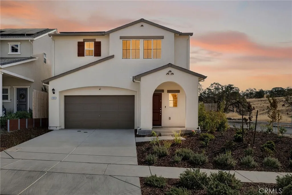 Welcome to 1147 Lentil Way, a modern two story home in the highly sought after Oak Valley community. Built in 2022 and used only part time, this property feels brand new. Situated on a corner lot, it offers added privacy along with views of the seasonal creek and surrounding valley. The open concept floor plan connects the living, dining, and kitchen areas, creating an inviting space for everyday living and entertaining. The kitchen features quartz countertops, a large island, stainless steel appliances, and ample cabinetry with a pantry for storage. Upstairs, the spacious primary suite includes a walk in closet, dual sinks, a walk in shower, and a soaking tub. Three additional bedrooms, a full bath, and a dedicated laundry room provide convenience and flexibility. Other highlights include LVP flooring, a tankless water heater, owned solar panels, and a two car garage. The backyard is a blank canvas, ready for your personal touch. With nearby trails and easy access to Chicos shops, dining, and schools, this home combines modern comfort with a lifestyle close to nature