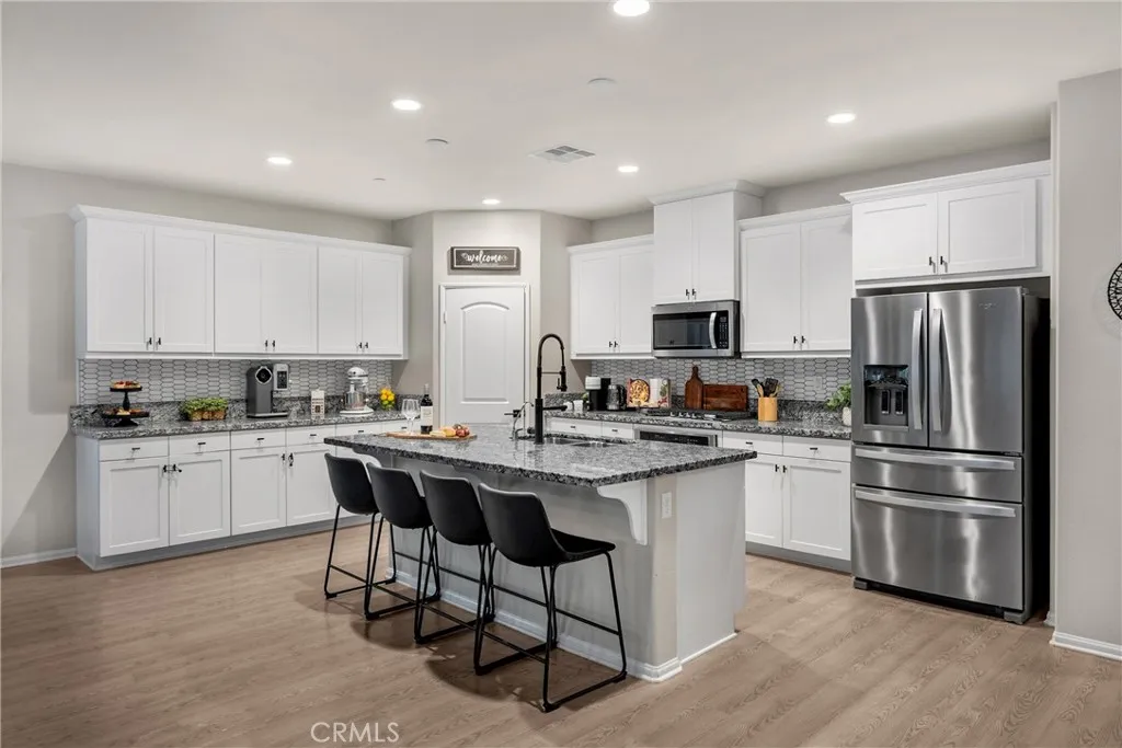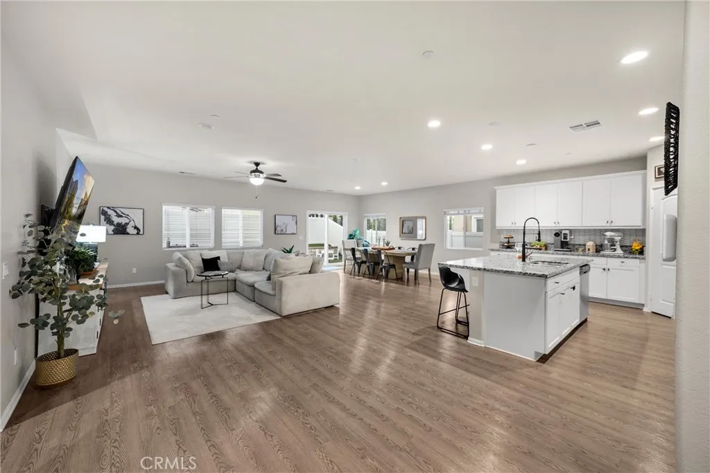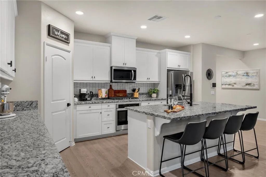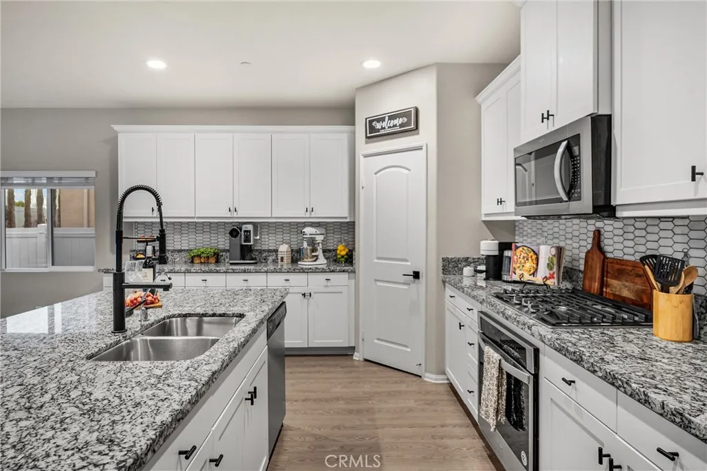 Welcome to 24440 Reserve Ct! Modern comfort meets effortless living! Located in the highly desirable Audie Murphy Ranch community, this beautifully upgraded single-story home offers 4 spacious bedrooms, 3 full bathrooms, and over 2,400 sq ft of open-concept living space. Built in 2020, this home has been thoughtfully designed for both everyday living and stylish entertaining. Step inside to discover luxury vinyl plank flooring, high ceilings, and an abundance of natural light. The chefs kitchen features granite countertops, a large center island with bar seating, stainless steel appliances, a walk-in pantry, and plenty of cabinet storage. The private primary suite is tucked away from the secondary bedrooms and includes a large walk-in closet, dual sinks, a soaking tub, and a separate glass-enclosed shower. Secondary bedrooms are well-sized, with one offering en-suite access. Additional highlights include: whole house water softener system and spacious laundry room. Outside, enjoy low-maintenance landscaping, artificial turf, and a spacious backyard ready for your personal touches. All of this in a resort-style community offering pools, spas, walking trails, parks, sports courts, and top-rated schools nearby. With easy access to shopping, dining, and the 215/15 freeways, this home checks every box!