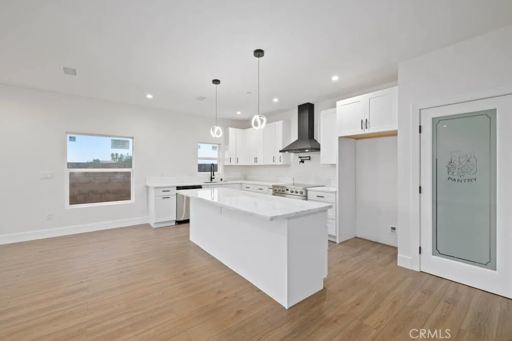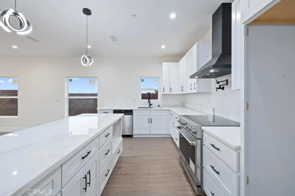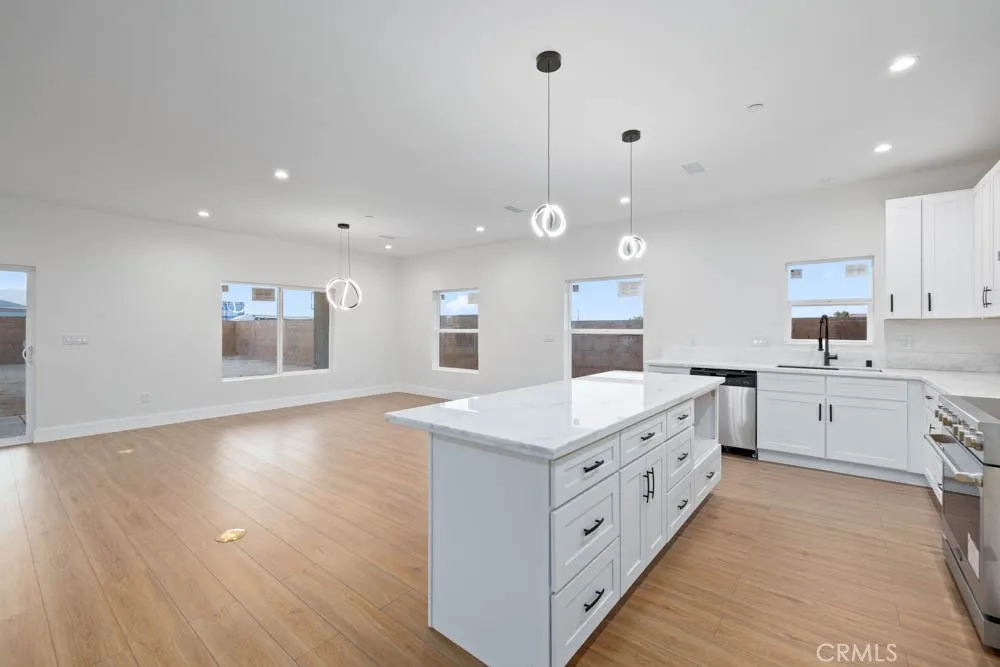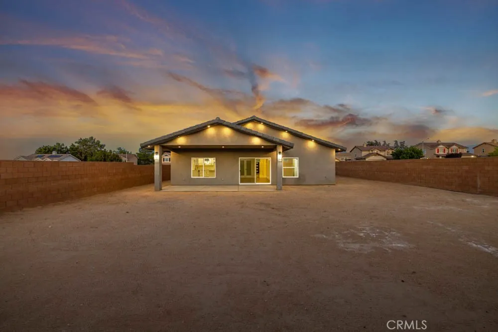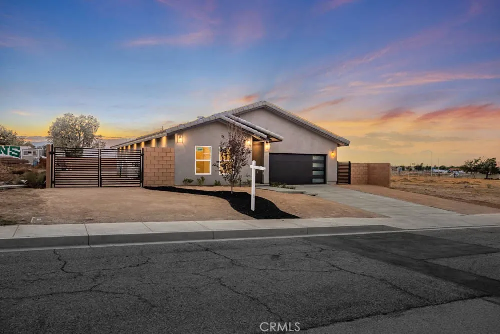 Modern Ranch-Style Living in Palmdale - Brand-New & Move-In Ready! Step into a home where contemporary style meets everyday comfort. This single-story ranch offers 2,238 sq. ft. of brand-new living space, carefully crafted with an eye for detail and functionality. From the street, the home makes a statement with its clean ranch-inspired lines, wide front elevation, and modern glass-accent garage doors. Inside the grand hallway welcomes you with luxurious porcelain flooring, wide spacious hallways leading to the rest of your brand new spectacular home! Bright, Open-Concept Interior The heart of this home is an expansive living area filled with natural light streaming through large dual-pane windows. Soaring 9-foot ceilings add volume and airiness, while the open floor plan effortlessly connects the living, dining, and kitchen spaces. The kitchen itself is a dream for entertainerscomplete with an 8-foot quartz island, walk-in pantry, pot filler, Upgraded Stainless Steel Appliances, & sleek modern finishes that make cooking and gathering very inviting & full of joy. This home offers 4 spacious bedrooms and 3 full bathrooms, each styled with high-end touches. The primary suite is a true retreat, featuring a spa-inspired bathroom with a rainfall shower, Oversized Dual vanities & a walk-in closet so large it feels like its own room! Step outside to enjoy Backyard Living under a Large covered patio overlooking your spacious backyard; with a side-yard space offering potential RV parking Perfect for family events & gatherings! Extras & Functionality offered at No Cost- Paid Solar Pa