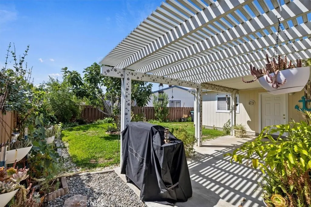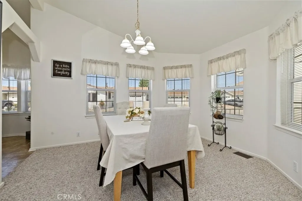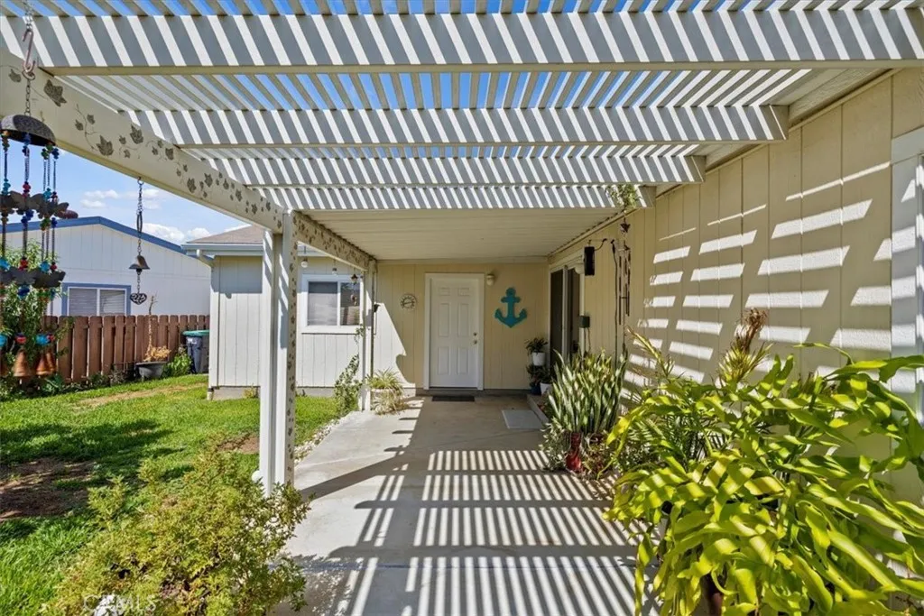 Gorgeous 3-bedroom, 2-bath manufactured home located inside Sun Meadows, Menifees premier 55+ gated community. Highly desirable floorplan with a spacious living room that flows effortlessly into the dining room, perfect for entertaining. The kitchen is equipped with a center island and sunlit breakfast nook. The indoor laundry room has storage cabinetry with matching built-in desk. The primary bedroom is a serene retreat with a luxurious ensuite featuring a garden tub flanked by two vanity sinks and a separate shower. One of the secondary bedrooms features a double door entry from the living room, a walk-in closet and sliding door to the exterior. Step outside to the private backyard, where a covered patio, grass lawn and shade tree create an ideal setting for relaxation. Enjoy ample onsite parking with full-size driveway and two-car garage. Community amenities include a clubhouse with banquet facilities, billiards, gym, shuffleboard, indoor spa & sauna, pool, pickleball courts, and a large practice putting green. Conveniently located near shopping, restaurants, and healthcare facilities.