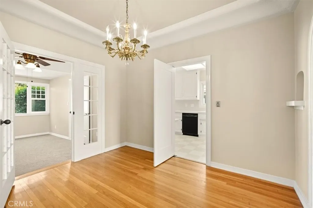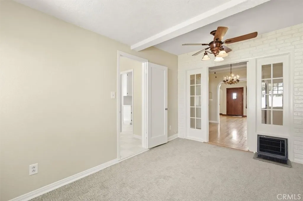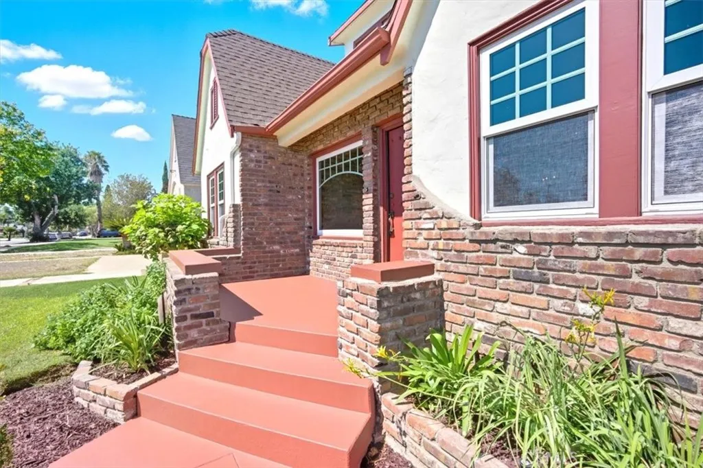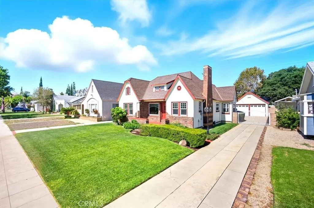 Welcome to this charming one of a kind vintage English style home, in the heart of Ontario's historic district! Enter to find an abundance of natural light streaming through large updated windows, gleaming hardwood floors, a fabulous white brick fireplace with dark wood mantle and original relief sculpture and hearth tiles, flanked by dark wood bookcases. This grand room flows seamlessly into the formal dining room, enhanced by original glass french doors and a stunning crystal chandelier. the traditional style chef's kitchen features vintage style lighting, gleaming tile countertops, crisp white cabinetry with depression glass knobs and pulls and cream and tan checkerboard flooring, that spans to the breakfast nook with ceiling fan, and laundry room with convenient half bath. The home offers generously sized bedrooms with ceiling fans and plantation shutters, plenty of storage and a wonderful walk in closet with built in dresser and shelving. The carpeted den is perfect for a home office, teen homework area or playroom, and the full bath is a step back in time with pedestal sink, original mirrored medicine cabinet, period lighting, beautifully preserved wall and floor tiles, and arched tub alcove with shower. The yard is perfect for entertaining family and friends, or quiet relaxation on the patio under the shade tree. The lush green lawns surrounded by a meandering path make for a peaceful escape, and a detached 2-car garage with updated garage doors and auto opener are the perfect combination of convenience and style. This home is truly historic livable art, combined wit