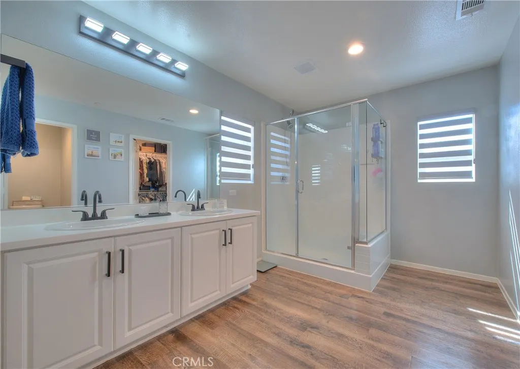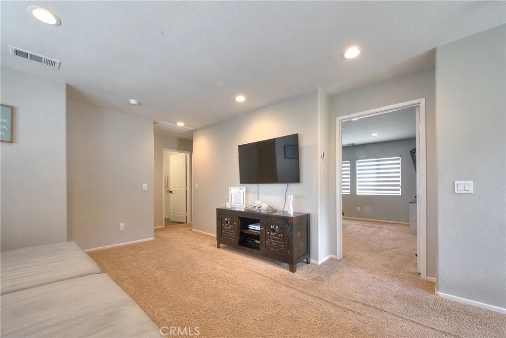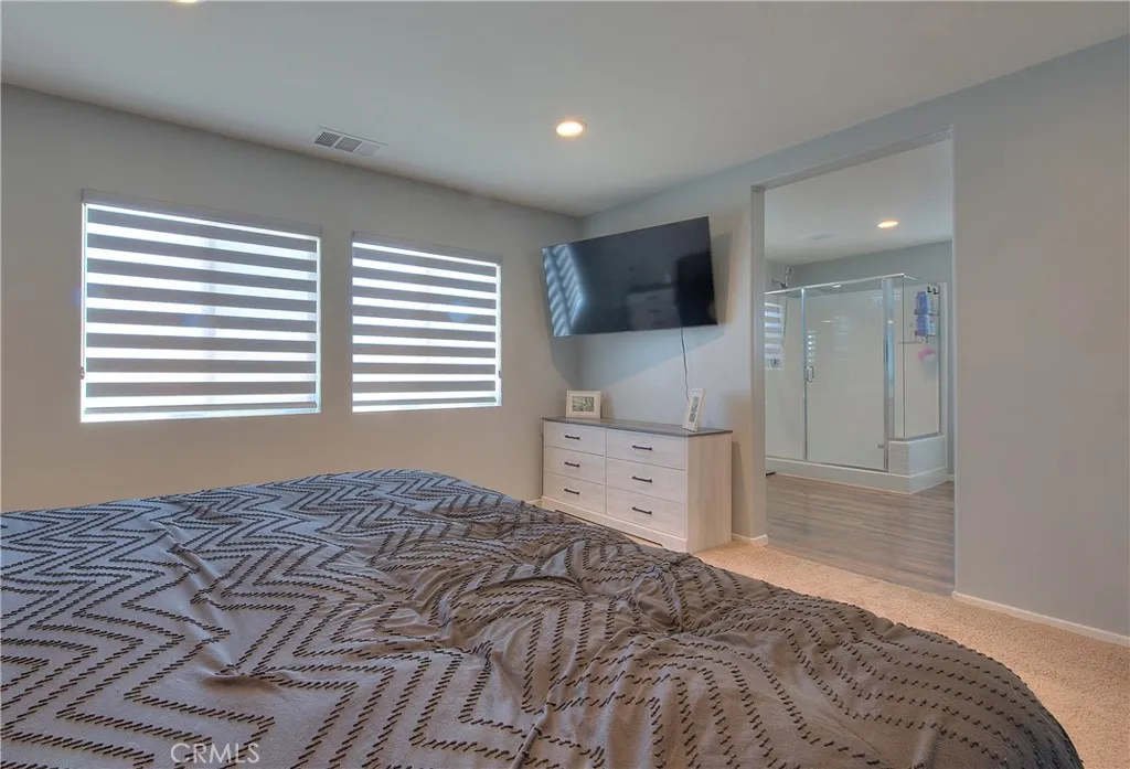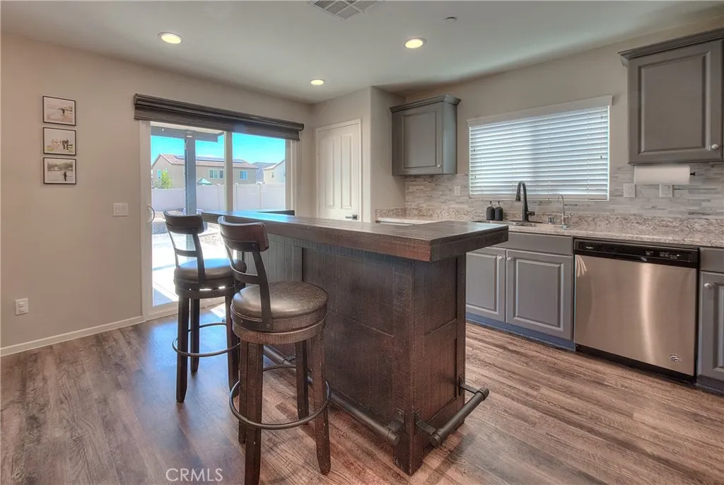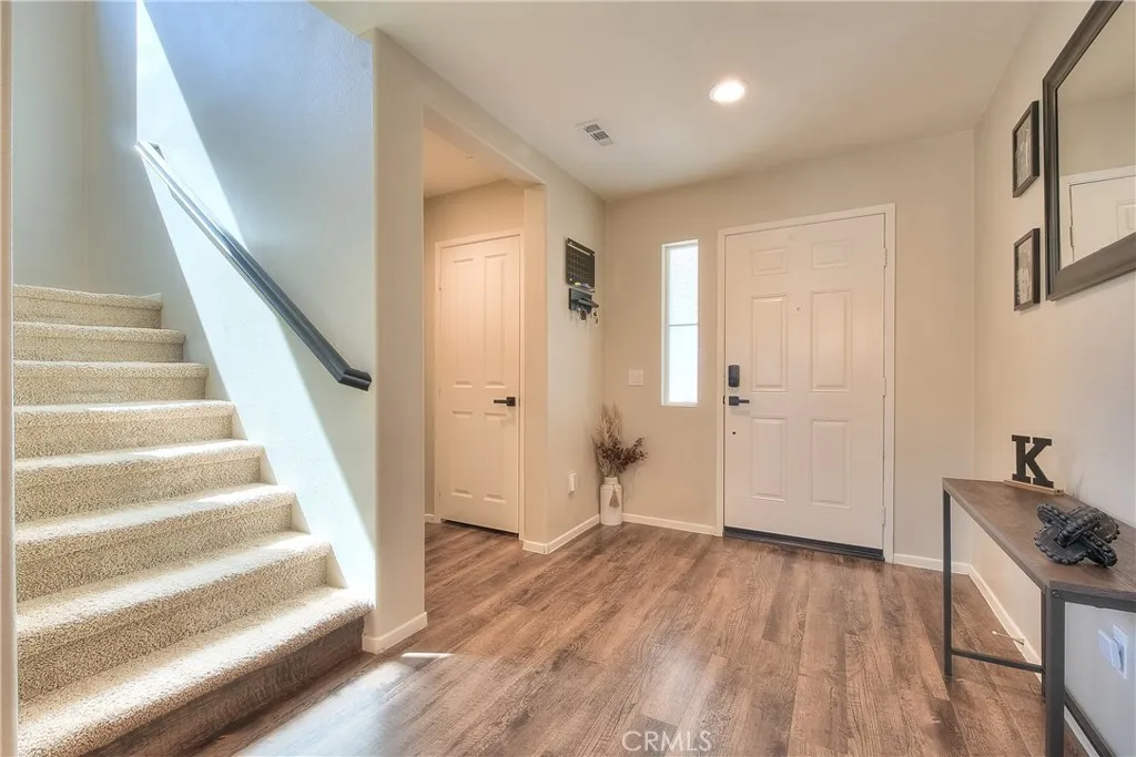 Welcome to your dream home at 29428 Bamboo Ct a beautifully upgraded, energy-smart residence in the heart of Winchesters Aspen Pointe community. With 3 bedrooms, 2.5 baths, and a generous loft upstairs, this home brings together stylish finishes, functional design, and outdoor appeal for modern living. The main level features elegant laminate wood flooring throughout, extending into all bathrooms and the upstairs laundry for both beauty and durability. The kitchen is a showpiece: stainless steel appliances, an elegant stone backsplash, upgraded matte black sink fixtures, and matching black door handles and cabinet hardware flow seamlessly throughout the home. A separate upstairs laundry room adds convenience and efficiency. The loft upstairs provides flexible spaceideal as a media room, play area, home office or study. The primary suite is a true retreat, boasting a walk-in closet, dual sinks in the bath, and tasteful finishes for comfort and style. PAID-OFF solar panels reduce your energy costs and offer peace of mind. A whole-house water softener and reverse osmosis filtration system deliver better water quality for the home. The backyard is an entertainers delight: a newer AlumaWood patio with ceiling fans and built-in heaters sets the stage for all-season outdoor enjoyment. A stone fire pit anchors cozy gatherings. Durable vinyl fencing ensures low maintenance and longevity. Large gated RV parking with reinforced concrete is secured behind a custom iron & wood gateperfect for those with toys or trailers. This home sits on a generous lot located in a cul-de-sac in a gro