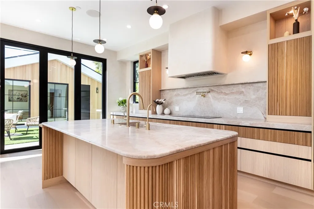 Welcome to this exquisite modern estate, where elegance and functionality meet. Profession and art met again to create this magnificent 6-bed/7-bath house in one of the best neighborhoods in Encino. As you step into this beautiful home, youre immediately greeted by an open-concept design that flows seamlessly from the entrance all the way to the backyard. The kitchen has been thoughtfully designed to bring to life a modern organic style. For added convenience, a secondary prep kitchen sits behind the main one, allowing the chef to prepare meals while keeping the main kitchen clean and organized. The living room is bright and welcoming, featuring a high ceiling and sliding pocket doors that blur the line between indoor and outdoor living. A gorgeous dining area seamlessly pairs with a stylish bar, overlooking the courtyardperfect for hosting family and friend gatherings. The exclusive movie theater offers a true cinematic experience with a professional sound system. Moving upstairs, the second floor offers spacious bedrooms with access to oversized balconies that overlook the front and backyards. The master bedroom is a true retreat, featuring a luxurious bathroom. A well-designed walk-in closet features a welcoming ambiance, complete with an elegant makeup vanity for added convenience. In addition to the main residence, the property includes a spacious 1-bed / 1-bath ADU, complete with its own open kitchenperfect for guests and extended family. The outdoor space is an entertainers paradise, offering a pool and spa, a built-in barbecue, and integrated sound systems that exte