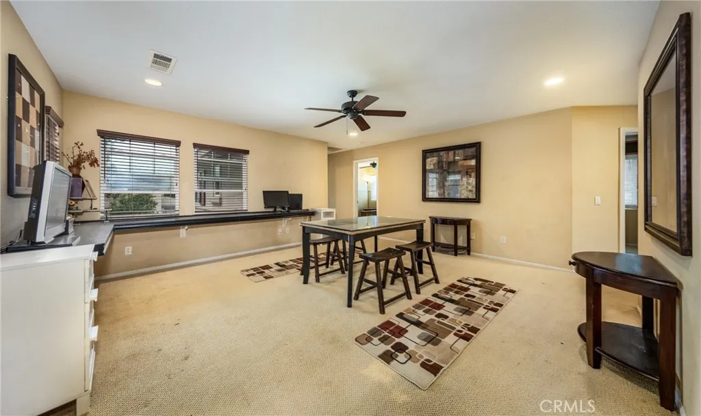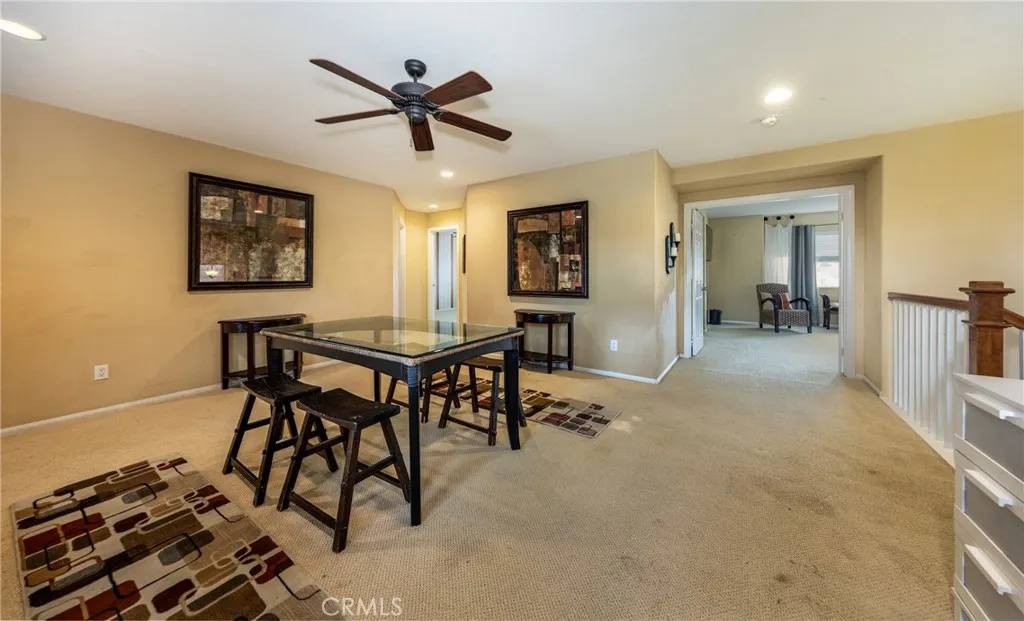 Wonderful home in the desired McSweeny Farms community. Spacious 5 bedroom, 3 bath home that was originally a model home and has views of the local mountains & located close to Diamond Valley Lake. Downstairs you can relax in the living/dining area or step over to the kitchen w/lots of cabinets, beautiful black appliances & a granite island that opens up to the family room with a cozy fireplace. The main floor bedroom has a bathroom right across from it. Upstairs there is a large loft, separate room that can be used as a den or office w/media niche, a bathroom w/dual sinks for the three bedrooms. Double door entry into the primary bedroom with bathroom having soaking tub, step-in shower, dual sinks & huge walk-in closest w/his & her doors. Two separate garages, each having direct access into the home. Inside laundry room has sink & plenty of storage space. Good sized back yard with a built-in BBQ. Having one of nicest HOA complexes with amenities that include a large community clubhouse complete on the inside with a fitness center, basketball, billiards, multipurpose rooms, and a large banquet room w/kitchen that you can rent out for those special occasions. Outdoors enjoy the resort-style pool, spa, cabanas, BBQ plaza, parks & sports fields. This is certainly a home you are going to want to check out.