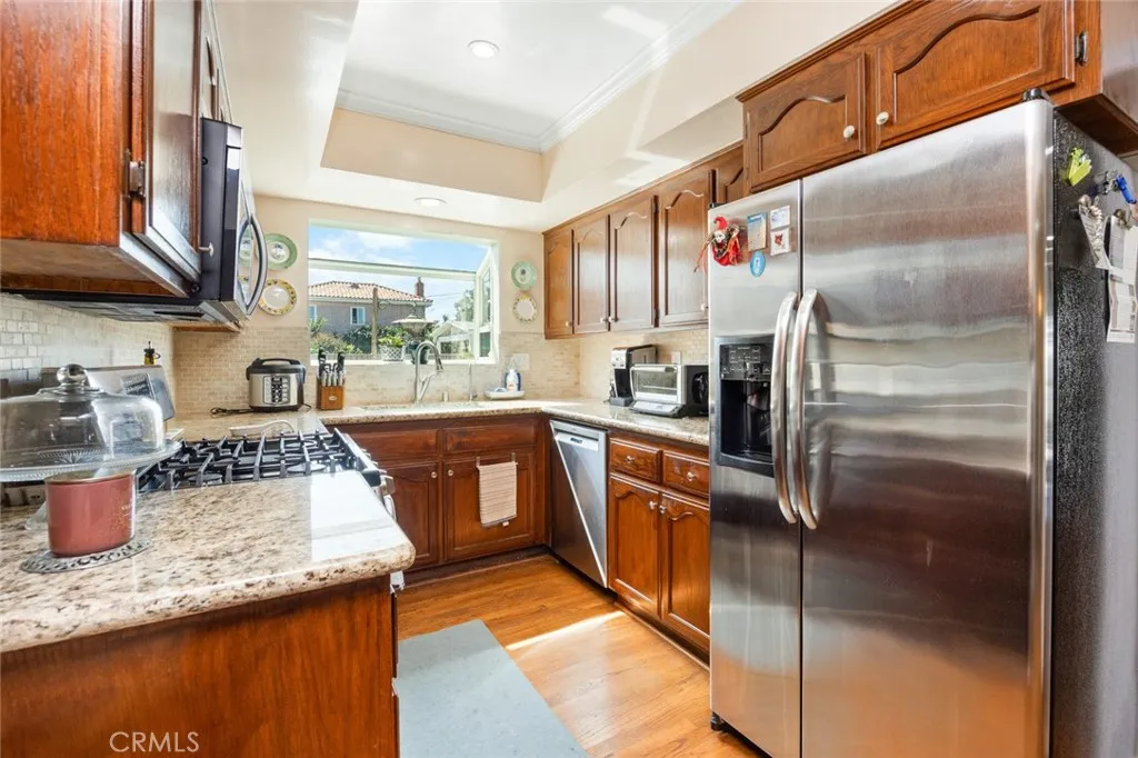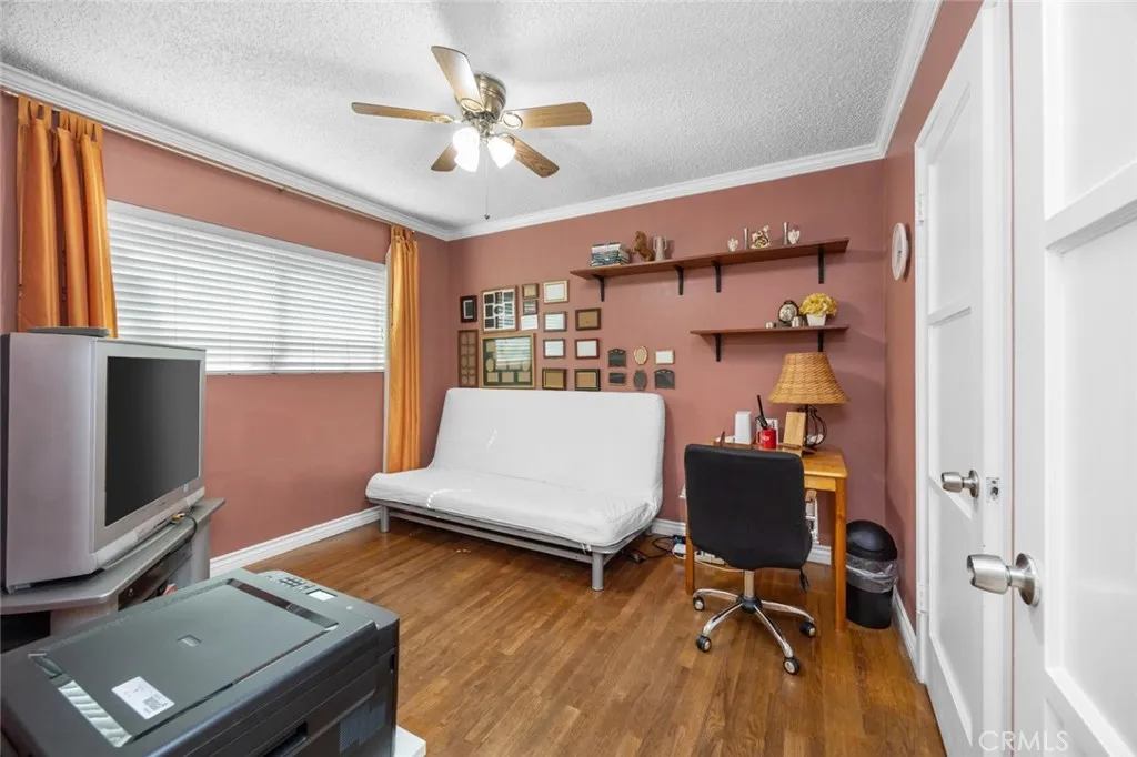 Turnkey Family Retreat in a Prime Location! Welcome to this impeccably maintained and fully furnished 3-bedroom, 2-bathroom residence, thoughtfully designed for modern comfort and convenience. Upon entry, youre welcomed by an open-concept floor plan complemented by gleaming hardwood floors that flow seamlessly through the main living areas. A versatile bonus room, finished with durable laminate flooring, offers flexible use as a home office, fitness space, or guest suite. The kitchen features updated granite countertops and modern appliances, while both bathrooms have been tastefully renovated with sleek ceramic tile flooring for a sophisticated touch. The exterior boasts enhanced neighborhood appeal with a professionally landscaped front yard, maintained by an automated sprinkler system. The private backyard offers a serene retreat featuring a hardscape patio, built-in barbecue, and low-maintenance drip irrigationperfect for outdoor entertaining. Located in a desirable neighborhood within the Bellflower Unified School District, this home is conveniently close to top-rated schools and just minutes from Lakewood Mall. Additional amenities include central heating and air conditioning, ensuring year-round comfort.