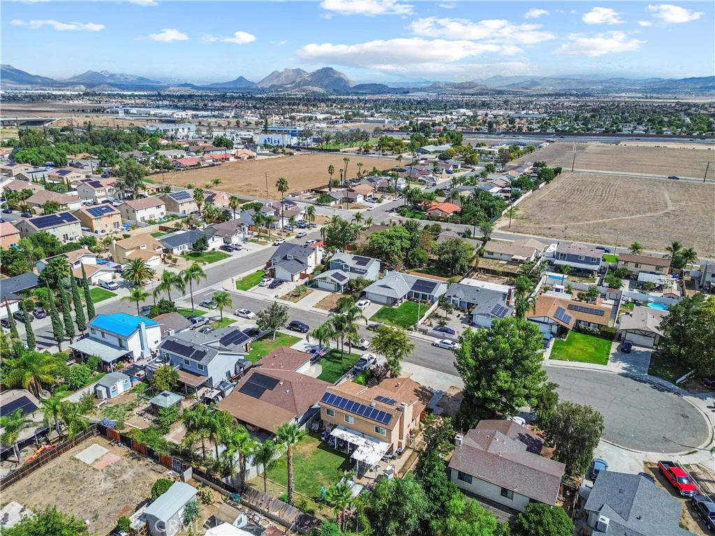Welcome to this beautifully remodeled single-story home, perfectly blending modern updates with timeless charm. Nestled in a quiet cul-de-sac in Perris, this 3-bedroom, 2 bathroom residence offers both comfort and functionality for todays lifestyle. Step inside to discover an inviting open floor plan with high vaulted ceilings, abundant natural light, fresh paint, and upgraded flooring throughout. The spacious kitchen is a true highlight, featuring sleek quartz countertops, a large picture window, 5-burner gas stove, and ample cabinetry designed for both everyday living and entertaining. The primary suite provides a private retreat with a modern bath boasting stylish finishes, while two additional bedrooms share an updated full bath perfect for family, guests, or a home office. Additional features include central AC and heating, a new roof, updated systems, and PAID solar panels for energy efficiency and low utility costs. Outdoors, enjoy a generous backyard ideal for gardening, relaxing, or weekend gatherings. The yard features mature pomegranate trees, providing beauty, shade, and seasonal fruit to enjoy. With a sliding door off the dining area, indoor-outdoor living comes easy. Laundry is conveniently located next to the kitchen with direct garage access. Best of all, this home has no HOA and is move-in ready with thoughtful upgrades throughout Located close to elementary schools in the Perris Union District, parks, shopping, and freeway access, this home is perfect whether youre a first-time buyer, downsizing, or simply searching for a peaceful place to call home. Dont