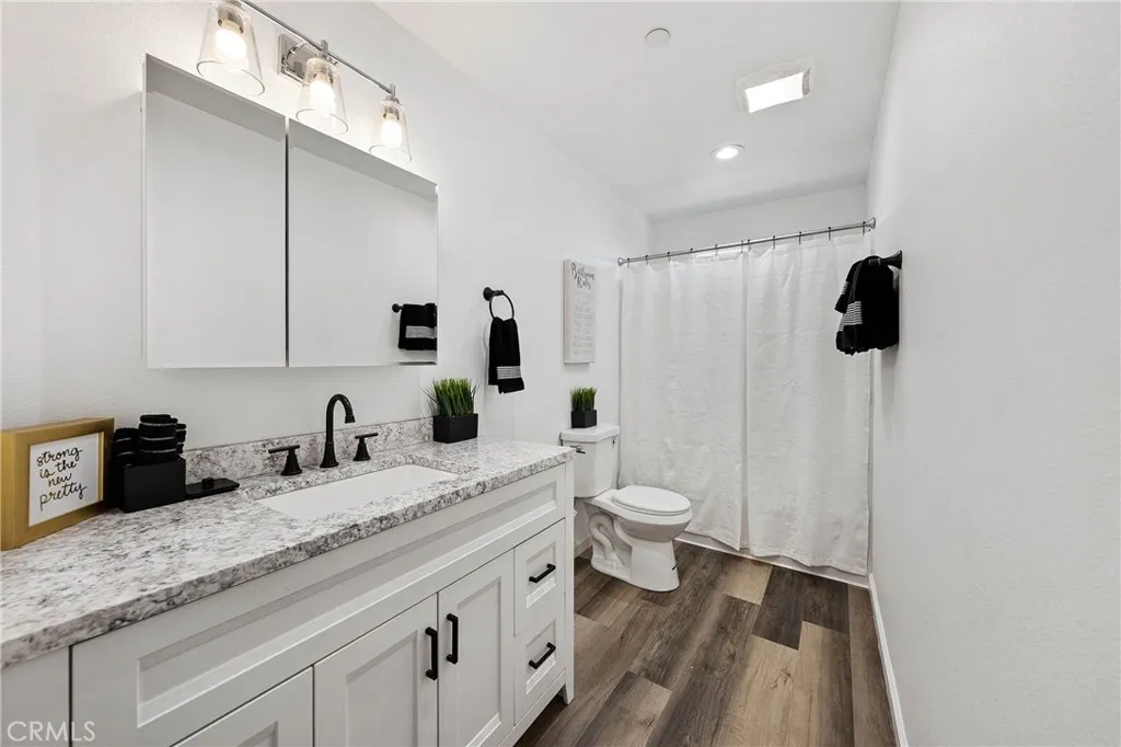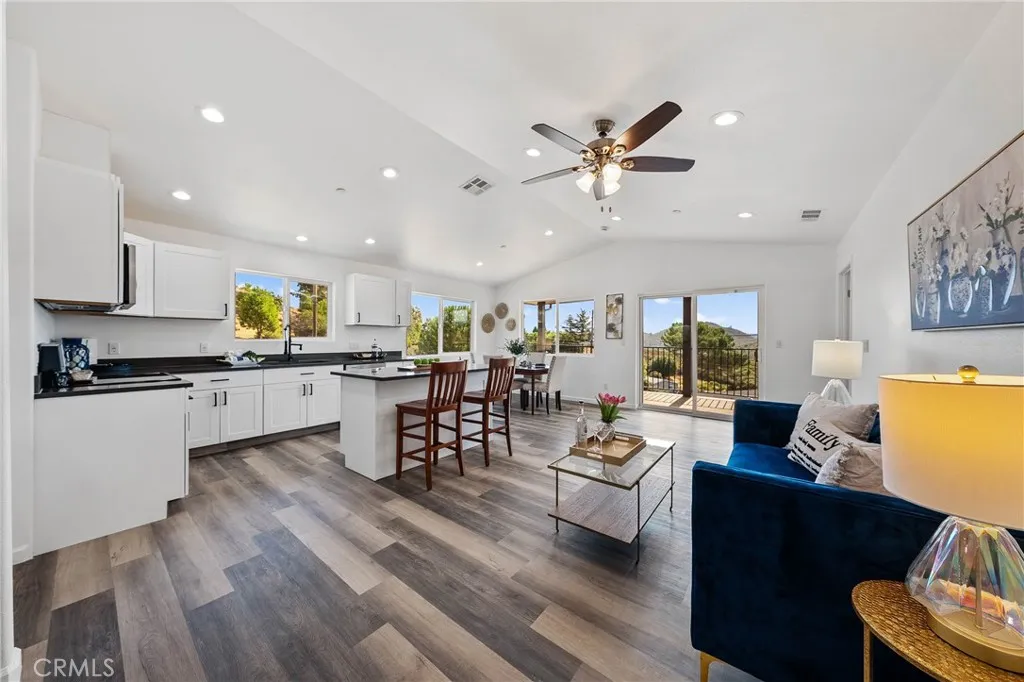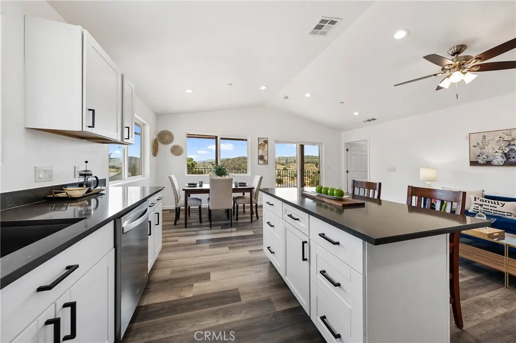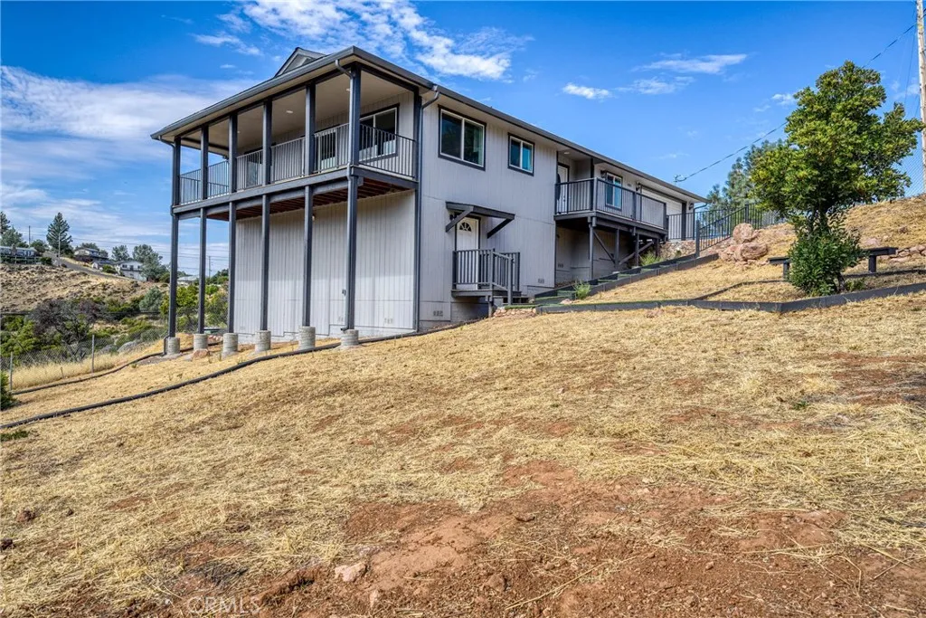 Brand New Construction! This contemporary residence features a variety of impressive amenities and refined design elements. The home's key features include a spacious, fenced yard, a level driveway, and an inviting front deck. The interior boasts an open floor plan with vinyl plank flooring, modern can lighting, sprinklers, and classic finishes. The great room has vaulted ceilings and is illuminated by numerous windows and seamlessly connects to the kitchen, which is equipped with a center island, stainless steel appliances, and quartz countertops. The adjacent dining room includes a slider door leading to a covered deck, ideal for outdoor living. The private primary bedroom offers an en-suite bath with double sink vanity and a tub/shower combo, with granite counter tops and is strategically separated from the other bedrooms. Bedroom 2 provides views of Mt. Konocti and is conveniently situated near the hall bath, also featuring a tub/shower combination. Additional amenities include an interior laundry room with direct access to an attached two-car garage. A third room would make a great home office or den. Efficiency features include solar and on demand water heater Mini split AC units and Propane heat. The seller is also offering an exciting expansion opportunity: the lower, undeveloped area of the home has received approval for a 670+ square foot bonus ADU studio unit, it can be completed to include a full kitchen and bath. For details on this current additional space and cost to expand this area, please contact the listing agent. This home is located in the Kelseyville R