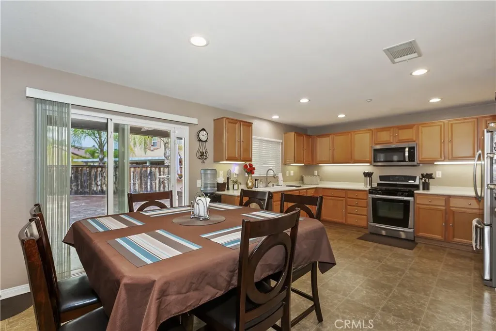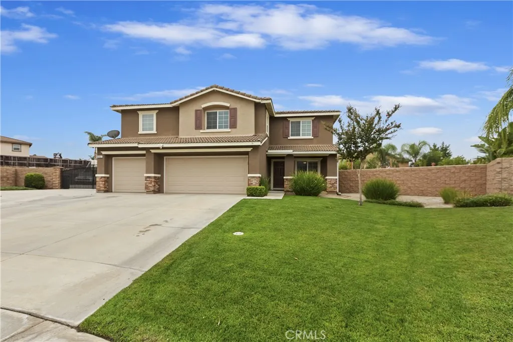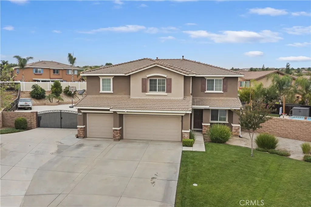 This could be the home you have been waiting for! An amazing opportunity to own a gem within this beautifully maintained neighborhood. This floorplan is perfect for any buyer! This home offers a tiled flooring at entry into the large formal living space. This home features 5 spacious bedrooms and 3 full bathrooms and a large bonus room. When you walk through the door you will immediately feel the inviting atmosphere and comfort of the home shown by the wonderfully kept condition. The kitchen has stainless steel appliances with brand new microwave and flows to the family dining and family room space which is great for quiet meal or a family and friend gathering. The main floor bedroom and full bathroom makes for excellent guest quarters. Upstairs is large and open with 4 more bedrooms and 2 bathrooms, large bonus room, and laundry upstairs for convenience. The primary bedroom like a private retreat is sure to satisfy any buyer. The convenience of its own primary bathroom offers dual sinks, tub shower combo, and a walk in closet. The three car attached garage with ample storage and provides direct access to the home. There has been no expense spared outside! Surely when you drive up and see the large double gate RV/Boat/Trailer/Toy parking notice how the possibilities seem endless. Walk out to the backyard through the sliding door out under the oversized alumawood covered patio space with upgraded electrical including the ceiling fan fixtures, and that's just the beginning. Whether this is going to be your very own private oasis or an entertainers delight the upgrades are end