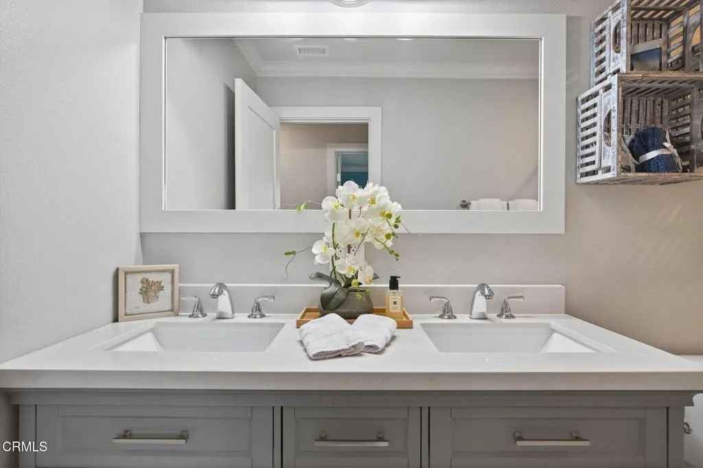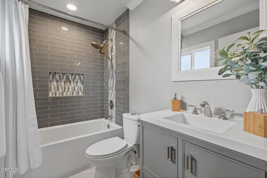 Nestled in a peaceful Camarillo community, this beautifully remodeled single-story home offers 3 bedrooms, 3 bathrooms, and 1,512 sq ft. of thoughtfully designed living space. A welcoming front entrance with rose bushes lining the pathway sets the tone for the charm inside.Extensively remodeled in 2018, the home received a new roof, dual-pane vinyl windows, updated water lines, and upgraded electrical. The bathrooms feature fully tiled bath and shower combos, while the open-concept main living area showcases quartz countertops, a marble backsplash, stainless steel appliances, and a striking 9-foot island with bar seating. Luxury vinyl plank flooring, crown molding, and a wood-burning fireplace complete the inviting space.The versatile ensuite/bonus room adds even more value with a bedroom, closet, kitchen, half bath, sunroom, and a private garden retreat. A two-car garage with epoxy flooring and built-in workbench, RV parking, and a recirculating instant-heat water heater enhance functionality and comfort.Outdoors, enjoy a private backyard highlighted by an orange tree, pear tree, and dwarf hybrid avocado bush. Centrally located near schools, parks, shopping, and dining--and paired with Camarillo's highly desirable year-round climate, this home blends convenience, upgrades, and tranquility in one rare package.