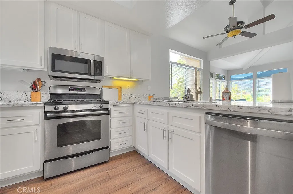 Stunning Turnkey Condo in Sought-After "The Terraces at Sierra del Oro" Experience sophisticated, low-maintenance living in one of Corona's most highly desirable communities, The Terraces at Sierra del Oro. This exceptional 3-bedroom, 2-bathroom condo is turnkey and ready for you! Step inside to an incredible open-concept design. The soaring ceilings above the living room create a dramatic effect as sunlight cascades through the expansive wall of windows. On a cool evening, enjoy the ambiance and warmth from the toasty fireplace, perfect for autumn nights. Beautiful tall baseboards add a gracious, finished touch throughout. The gourmet kitchen is designed for both function and style, featuring granite countertops, stainless steel appliances, a convenient breakfast bar, and a bright dining area with a ceiling fan. Retreat to the spacious Primary Bedroom, an airy sanctuary complete with a Hybrid Cathedral ceiling. A slider opens to your private balcony, offering a beautiful mountain viewthe perfect spot for your morning coffee. The primary en suite bathroom features a shower/bathtub combo and a generous closet. Bedroom #2 and the main Guest Bathroom are also on this level, with an Indoor Laundry area for ultimate convenience. A unique feature of this home is Bedroom #3, located on a separate floor. Currently set up as a flexible loft/office area, this space offers endless possibilities for a third bedroom, media room, or dedicated workspace. This prime location ensures your daily life is effortless. Commuting is a breeze with 5 major highways nearby, and you are just moments