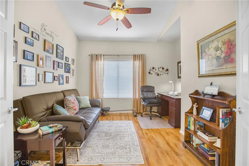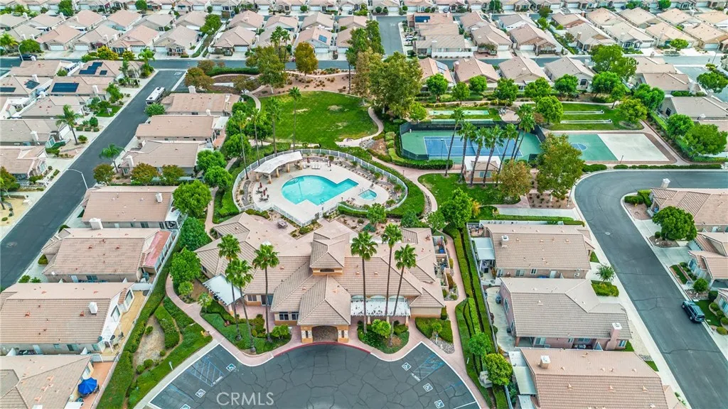 Welcome to your new home in The Club, one of Southwest Riverside Countys most desirable 55+ gated communities. This thoughtfully updated 3-bedroom, 2-bathroom residence offers a fresh take on a popular floor plan, with the option to use the office as a third bedroom. Inside, youll find updated flooring, fresh paint, and a unique interior window that opens from the kitchen to the family room, bringing in natural light and creating a bright, open feel. The airy layout is complemented by a neutral palette, ceiling fans, and window coverings throughout. The primary suite features a vaulted ceiling and private en-suite with dual sinks. Step outside to a private, low-maintenance backyard with a covered patio, perfect for morning coffee or evening relaxation. The Club offers resort-style amenities including a clubhouse, pool and spa, tennis courts, gym, BBQ area, library, game room, and optional RV parking. Conveniently located near shopping, dining, and the 215 freeway.