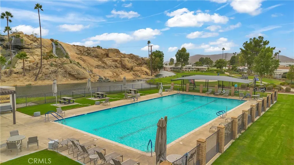 Welcome to 5001 W. Florida Ave #697 a spacious and well-maintained 2-bedroom, 2-bathroom manufactured home nestled within The Lakes at Hemet West, one of Hemets most desirable 55+ gated communities. Offering 1,440 sq ft of living space, this home is perfectly positioned to enjoy tranquil mornings, peaceful evenings, and access to resort-style amenities just steps from your door. This charming residence features a bright and open layout, a cozy fireplace, and generous room sizes throughout. The kitchen and dining areas flow seamlessly into the large living space, ideal for hosting or relaxing. The primary suite includes a full bath, and theres a separate laundry area for added convenience. Outside, enjoy your private patio area and easy access to covered parking. The Lakes at Hemet West offers an unparalleled lifestyle surrounded by natural beauty complete with waterfalls, lakes, and tree-lined walking trails. Residents enjoy access to a 9-hole executive golf course, a heated Olympic-sized pool, jacuzzi, pickleball, shuffleboard, bocce ball, and even horseshoes. The community also features a beautifully appointed clubhouse with a library, game rooms, fitness center, and event spaces for social gatherings. Pet-friendly amenities include a dog park and plenty of walking paths. Whether you're looking to enjoy daily recreation, peaceful views, or a vibrant social calendar, this move-in-ready home in a serene, secure, and amenity-rich environment is a rare opportunity. Schedule your private showing today and experience senior living at its best.