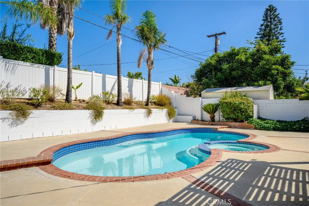 Welcome to your new home in a wonderful neighborhood! This property features a spacious front yard with a well-maintained lawn and plenty of parking space. Inside, enjoy a bright and airy atmosphere with natural light flooding through numerous windows. The living room includes tile floors, a cozy fireplace, recessed lights and vaulted ceilings. The kitchen is well-equipped with granite countertops, stainless steel appliances, double-pane windows, a kitchenette, and pantry. The formal dining room offers a lovely view of the private backyard, making it ideal for entertaining. The layout offers privacy, with all bedrooms located on one side of the house. The backyard is low maintenance, featuring a sparkling pool and spa, a covered patio, a grassy area, and space for a garden. This home offers great functionality and value, conveniently located near freeways, shops, and more. Come and see what this property has to offer!