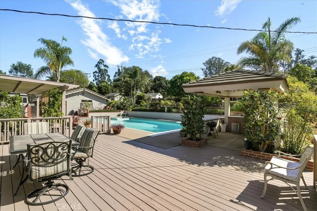 This stunning five bedroom home located in Lake Marie Estates offers the perfect blend of elegance and comfort. Featuring 3,100 sq ft, the main floor features a spacious owner suite complete with custom designed walk in closet and adjoining bathroom complete with beautiful amenities adjacent to a guest bedroom and full bathideal for multi-generational living or hosting visitors. The stunning gourmet kitchen offers a large island, DC double oven, KitchenAid gas stove & refrigerator. There are freshly refinished floors, dual pane windows, a large formal living room, and a formal dining room --- setting the stage for both entertaining and everyday enjoyment. There are two tankless water heaters in the home and separate heating for the downstairs owner suite. Upstairs, you'll find another private owner's suite, plus two additional guest bedrooms. Step outside to your private backyard oasis: a sparkling in-ground pool, covered outdoor kitchen with gas BBQ, ample counter space for serving and built-in amenities, garden pathways, beautiful decking, and serene spaces to unwind or entertain. There are several fruit trees including avocado and macadamia nut. There are newer Sunbrella awnings on the deck that provide shade when needed with a wood garden shed and two portable sheds for storage. Additional features include a detached three-car garage with interlocking garage floor tiles, RV parking area, circular drive, and two SunRun solar with two units will be paid off at closing. Optional opportunities include club membership to the Lake Marie Club, too. A true retreat, this propert