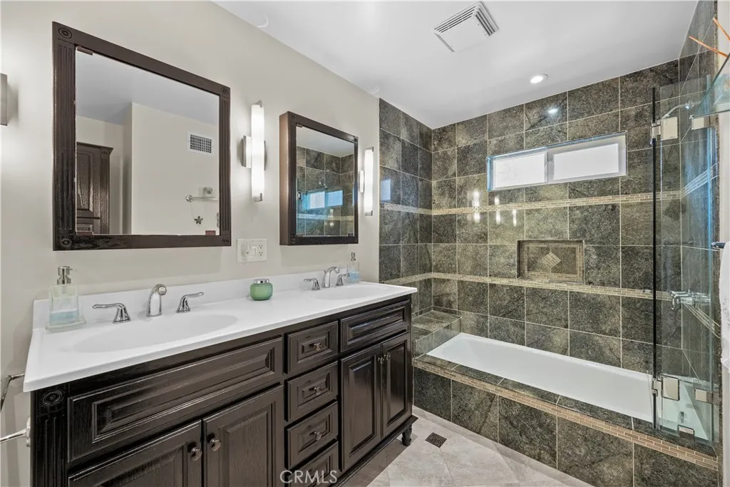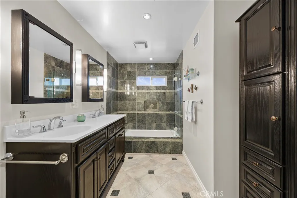 WOW!! Welcome to your dream home! This is more than a remodel, its a home where quality and comfort meet in one of Whittier's desirable Mar Vista Heights area. As you drive up you'll notice the great curb appeal and tasteful landscape along with lovely flower window boxes. Through the front door, the spacious living room welcomes you with open arms and features a stone faced fireplace, shelving on both sides, recessed lighting, newer windows and french doors to access the backyard. The heart of the home is in the generous sized chefs kitchen equipped with top of the line appliances & fixtures, custom cabinetry, quartz countertops, large island for culinary enthusiasts and dining area that easily accommodates large gatherings, newer sliding doors to access the back patio/yard. Spacious bedrooms with ample closet space. Gorgeous, show-stopping remodeled full bathroom with designer tile, sleek fixtures, warm lighting, and custom wood vanities that reflect the quality finishes throughout. Laminate flooring, recessed lighting, newer windows , sliding and french doors. Detached garage has a partitioned work shop/hobby or office space, including a pull down ladder to access lots of storage area. This large lot provides opportunities to expand the current home or even build an ADU. Don't miss out on making this beautiful place your home! Conveniently located near schools, parks, shopping and public transportation.