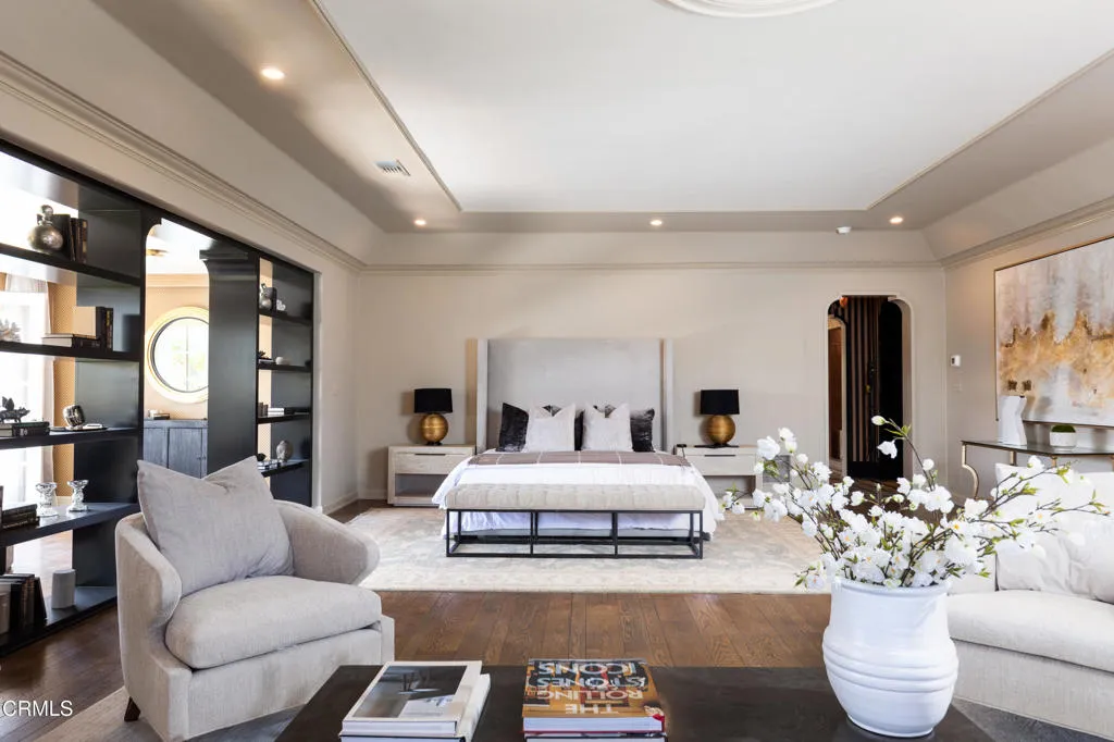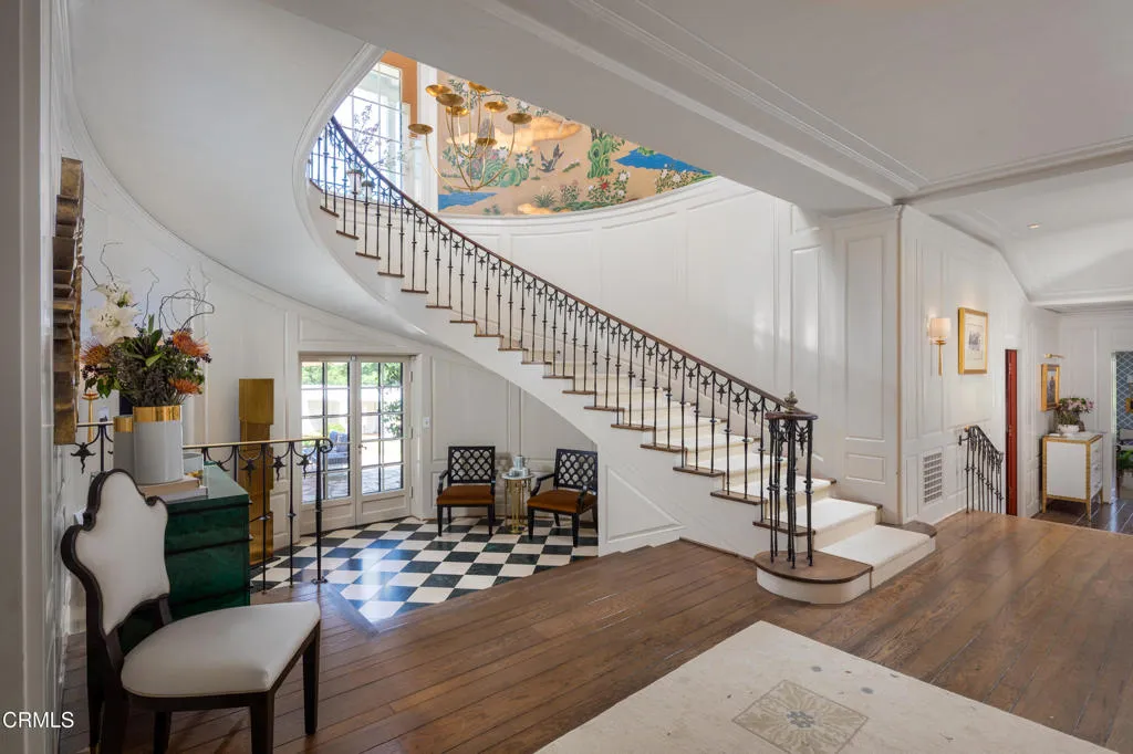 The finest work of renowned architect Reginald D. Johnson, this majestic 1928 Monterey Colonial estate is set on five acres in the heart of Pasadena.The Bauer/Cannell Estate & Gardens represents the union of architectural and horticultural artistry. .Owned by only two families over its 96-year history, the estate was designated in the City of Pasadena survey of Historic Gardens and is recognized as a contributing property in the proposed National Register Historic District. Most recently, the property was selected as the 2025 Pasadena Showcase House of Design in which 30 top designers remodeled and redesigned the estate for a month-long celebration of philanthropic events.The estate's grounds unfold like a private park, with sweeping lawns and paths through stately oaks, olive trees, and rose gardens. The main terrace overlooks a sparkling pool and pool house, while a canopy of trees opens to a north-south tennis court below. A sweeping circular drive leads to a motor court with a ten car garage and guest house. Inside, the residence offers 18 grandly scaled rooms, ten of which feature wood-burning fireplaces. Original architectural details have been beautifully restored alongside thoughtful modern updates. Steeped in history yet designed for gracious living, the Bauer/Cannell Estate & Gardens stands as a landmark of Pasadena's architectural and cultural heritage,a once-in-a-generation offering in one of the city's most distinguished neighborhoods.