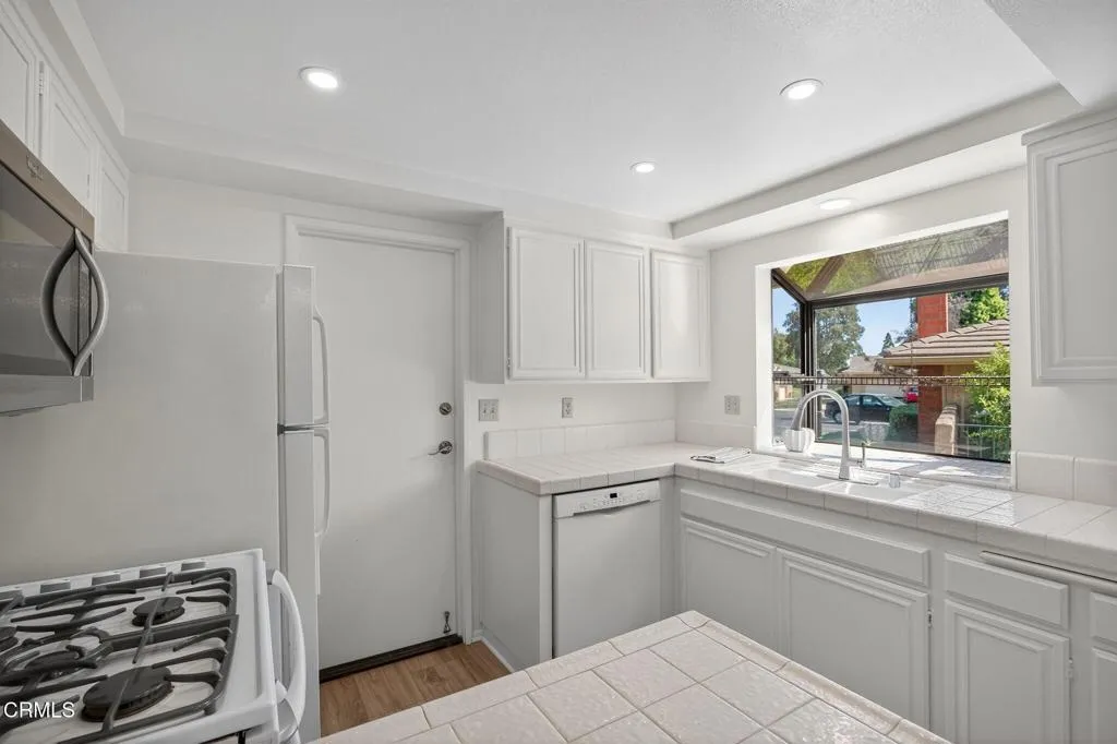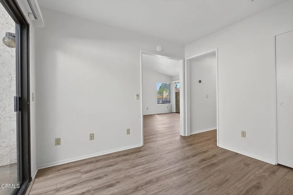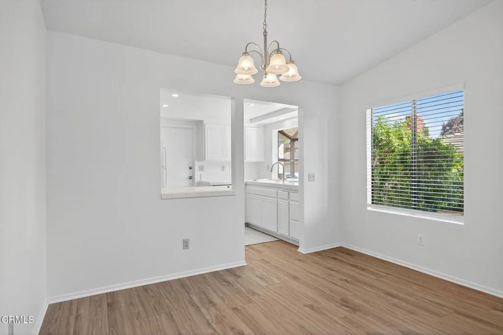 Welcome Home! This sparkling clean condo is ready for a new owner! Located in the desirable La Ventana community this single story, end unit offers approximately 866 of living space, with 2 bedrooms and one full bathroom. The 2nd bedroom currently is open to the living room but has it's own closet and could easily be modified with a door for a private 2nd bedroom. It also has a slider to a small patio to enjoy. The primary bedroom has a slider to open up to the private patio. Recent updates include new luxury vinyl plank flooring throughout, removal of acoustic ceilings, added lighting and freshly painted. This home has a clean and bright kitchen, open living room and full bathroom, plus a wrap around back patio for those lovely evenings to relax. An attached 2-car garage makes this an extra special property with a full sized driveway. Did I mention that the HOA takes care of exterior landscaping, roof repairs, pest control, and provides a well maintained pool and spa? They do! They also cover earthquake and fire insurance. Conveniently located to the County Government Center, freeway access and shopping, this home is an outstanding opportunity!