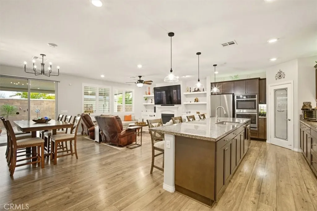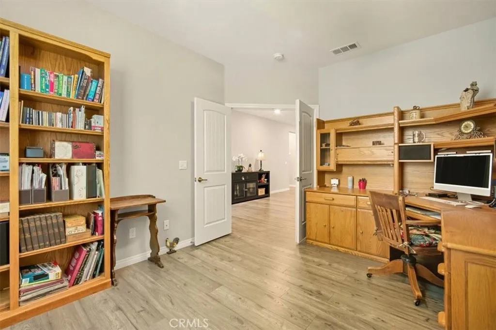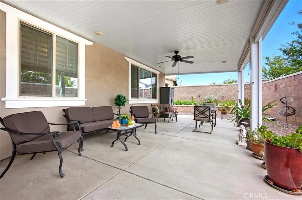 Immaculate, immaculate! This beautifully maintained 3-bedroom, 2-bathroom single-story homewith a flexible office space that can easily serve as a fourth bedroomoffers the perfect blend of comfort, style, and functionality. Located in a quiet, newer neighborhood, the home boasts excellent curb appeal, with a welcoming entry and attractive front landscaping. Inside, you'll find an open and inviting floor plan that connects the spacious family room, dining area, and stunning kitchenideal for everyday living and entertaining. The kitchen is a true centerpiece, featuring a walk-in pantry, modern cabinetry, ample counter space, and a large island overlooking the main living area. The private primary suite includes a well-appointed en-suite bathroom and a generous walk-in closet. Two additional bedrooms are thoughtfully positioned, and the second full bathroom is conveniently located nearby. The separate office/den provides the flexibility to serve as a fourth bedroom, guest room, or home workspace. Additional highlights include an interior laundry room for added convenience and storage, custom front door, solar panels, Tuff shed in the back, block walls, drip system front and back, window shutters, recessed lighting, Aluma wood patio cover with fans, Step outside to enjoy a beautifully landscaped backyard with a covered patio complete with ceiling fans and tasteful hardscapingperfect for relaxing or entertaining in any season. This move-in-ready home combines stylish single-level living with thoughtful features inside and out, all within a vibrant and growing community. All of t