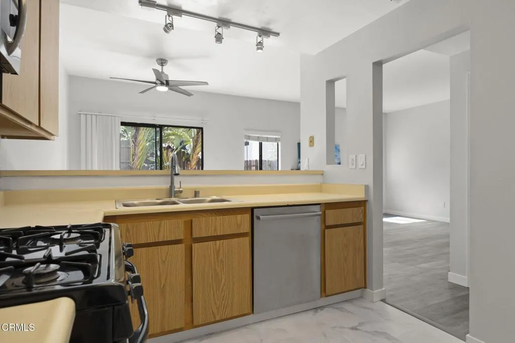 This West End Hip community is a short 2.7 miles to the beach with a dedicated bike path to the point. Wake up, strap your board to your bike and ride to the point with your wet suit on, or 1/2 on. Or, throw your mountain bike in your truck and roll up to Ojai for a morning ride. This property is situated in between 2 of my favorite towns and is cozy to boot. There is so much to do here you'll look forward to home. This home offers 3 over sized bedrooms, 2 1/2 bathrooms, an open concept living space, large garage and backyard plus deck. Private, quiet, nestled in the back of the community with peek a boo scenery towards the beach through a forest of trees and mountain sides.This well kept community also has a pool for the hot dipping days. The green belt is just across the street and has sycamore trees with benches for your morning meditation. Hike the Ojai Preserve. Bird Watch. Shop downtown Ventura or Ojai. The fun is endless, and this town-home will allow you to experience it all. What an opportunity to live in Ventura. This is a PUD so easier to finance and VA Loans are welcome here. Seller is motivated and reduced it to sell. Three, 1.2.3. bedrooms and three bathrooms, 1.2.3. bathrooms in an ocean town - what?