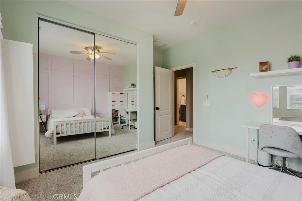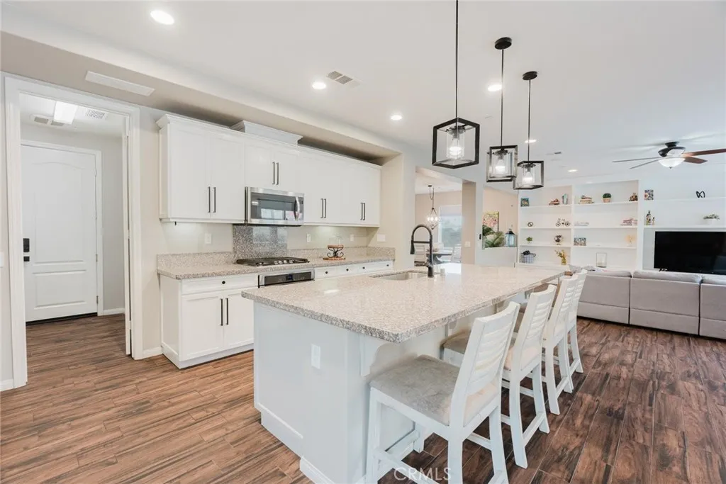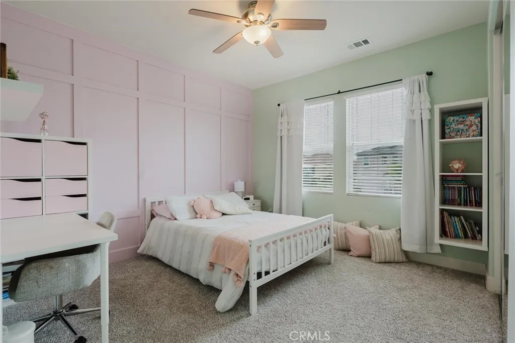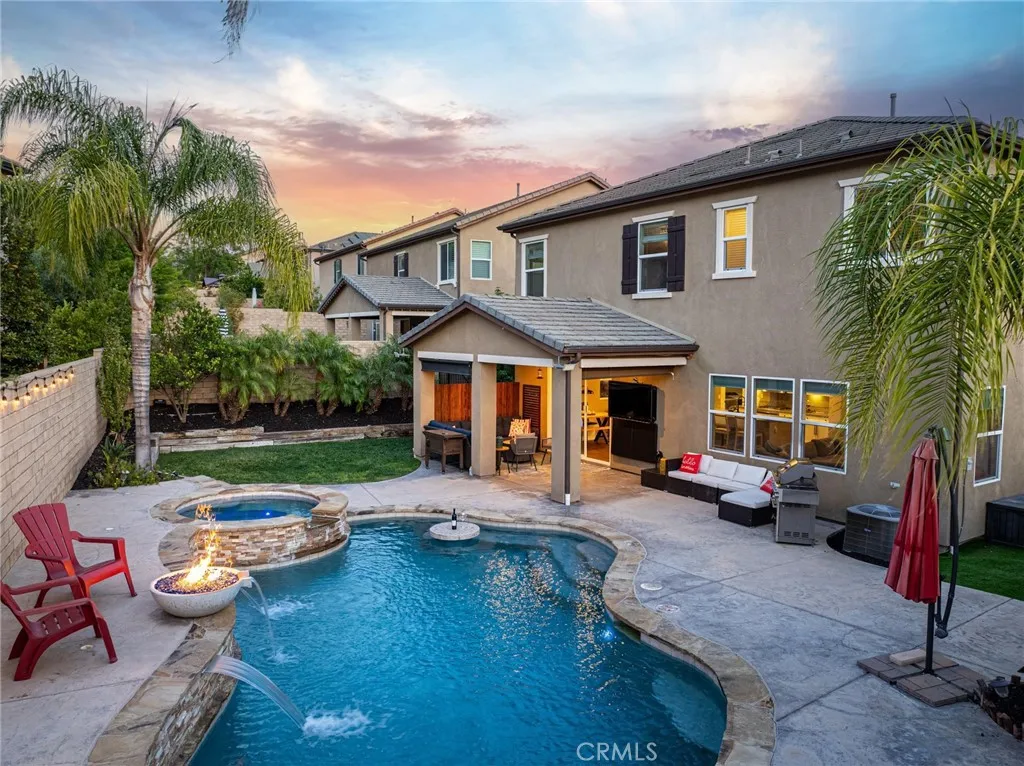 This beautifully updated 5-bedroom, 4-bathroom home offers 3,271 sq. ft. of spacious living, including an upstairs loft (possible 6th bedroom) + office area, and a full bedroom and bath on the main level. Ideal location on a CORNER LOT with added privacy and excellent parking for guests. Recent upgrades include custom wood paneling throughout the living areas and bedrooms, freshly painted cabinets with new hardware, updated light fixtures, custom closet organizers in every bedroom, luxury vinyl flooring in the bathrooms and newer carpeting upstairs. As you enter the front door you are immediately drawn to the bright, open floor plan. The formal dining room opens up to a spacious family room with custom built ins, surround sound and recessed lighting. The living area seamlessly flows into the kitchen featuring a large center island, updated pendant lighting, stainless steel appliances, and a custom built-in everyday dining area. Upstairs you will find 5 bedrooms plus the office area, complete with custom cabinets and wood planked walls. The generous primary suite boasts an electric fireplace, modern wood accents and a walk-in closet with custom organizers and lighting. The primary bathroom has luxury vinyl bathroom flooring, a large soaking tub and separate shower and additional linen storage. The secondary rooms are all a very good size, and the 5th bedroom has its own en-suite bathroom. Enjoy these upcoming summer months in your private backyard oasis featuring a sparkling pool and spa with tranquil spillover features. The outdoor California room is ideal for entertaining,