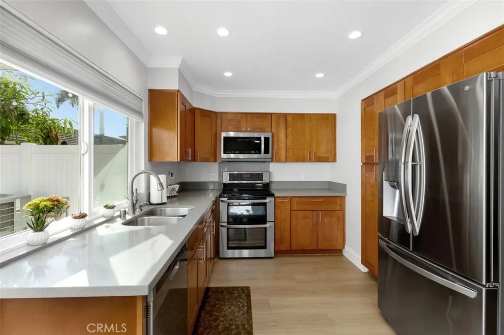 Step into this stylishly updated 3-bedroom, 2-bathroom townhome offering 1,121 square feet of thoughtfully designed living space. From the moment you enter, youll notice the bright and inviting interior, highlighted by luxury vinyl plank flooring and a neutral, modern color palette. The remodeled kitchen features quartz countertops, stainless steel appliances, and an adjacent dining area that flows seamlessly for everyday living and entertaining. Both bathrooms have been tastefully renovated, including a recently updated downstairs bath with a walk-in shower. Upstairs, the remodeled full bathroom complements the spacious bedrooms, providing comfort and convenience. Enjoy the privacy of your own enclosed courtyardperfect for morning coffee, outdoor dining, or a small garden. An attached 2-car garage provides secure parking and additional storage. Residents of this community enjoy access to a sparkling pool, and front yard maintenance, all with the benefit of low HOA dues at just $310 per month. The home is ideally located across from award-winning Golden Elementary, close to neighborhood parks, and just minutes from shopping, dining, and entertainment. With modern upgrades, a functional floor plan, and a prime location, this townhome is the perfect blend of comfort, style, and convenience.
