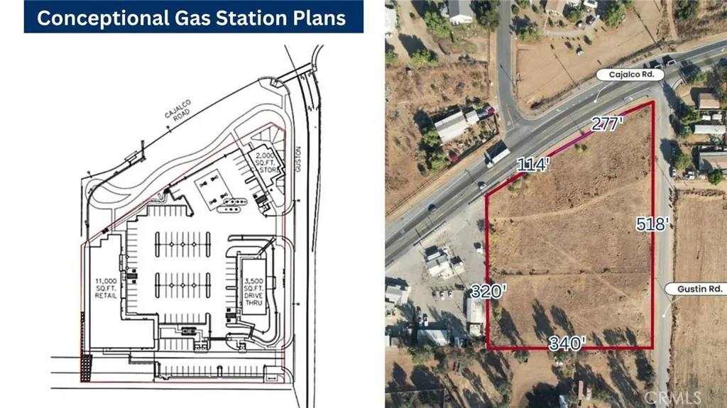 This prime 3+ acre property is zoned C-P-S (Scenic Highway Commercial) and sits on a highly visible corner with traffic counts approximately 20,000 cars per day along Cajalco Road, the main thoroughfare connecting Perris, Riverside, Corona/Norco, and March Air Force Base. Hardly any competition in the area as locals are in great need of new Retail Developments. The surrounding area shows strong demand for retail and service-oriented developments, supported by nearby residential neighborhoods with average household incomes ranging from $85k to $110k. Adjacent to the Lake Mathews General Store & Feed Store, the property is ideally positioned for a service station, car wash, shopping center, grocery store, dollar store, or other high-demand retail uses. This is a rare opportunity to secure a prime commercial corner in one of the Inland Empires growing corridors. Buyer to verify all information to their satisfaction.