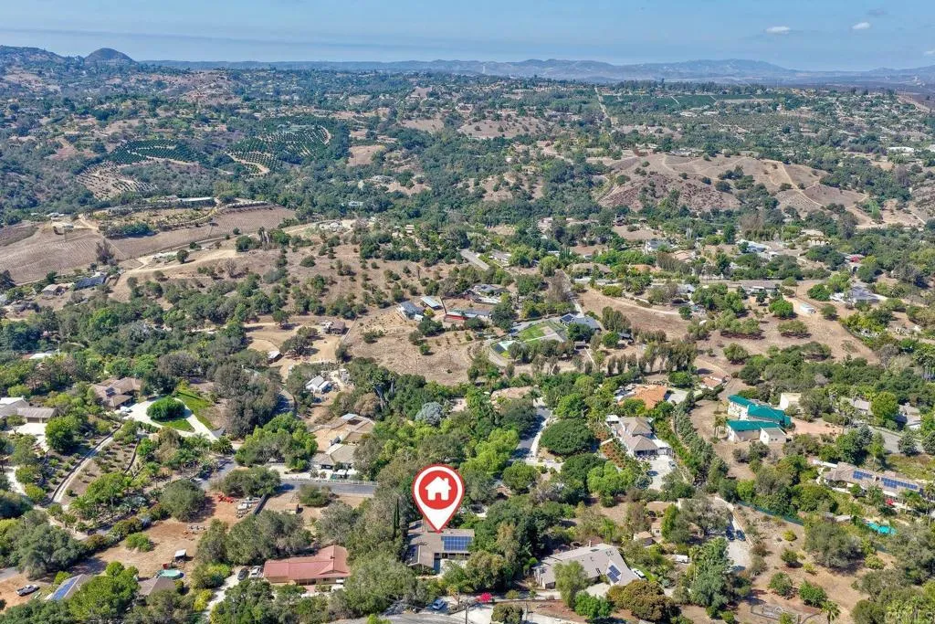 Nestled behind private gates on a sprawling 1-acre lot, this Fallbrook home offers the perfect blend of comfort, style, and functionality. All three main bedrooms and two full bathrooms are on the main floor, creating true single story living with vaulted ceilings, skylights, and an open, natural light floor plan. The modern kitchen features granite countertops, stainless steel appliances, and a lighted walk-in pantry, flowing seamlessly into the family and living areas. Beneath the home, a fully finished guest suite provides over 400 sq/ft of additional living space, complete with a kitchenette, bonus room, full bathroom, and private access; ideal for guests. Outside, enjoy mature fruit trees, terraced landscaping, views from multiple patios, including the outdoor spa. A stacked stone fireplace, abundant storage, and thoughtfully designed indoor-outdoor flow complete this exceptional home. Experience privacy, versatility, and the beauty of Fallbrook living.