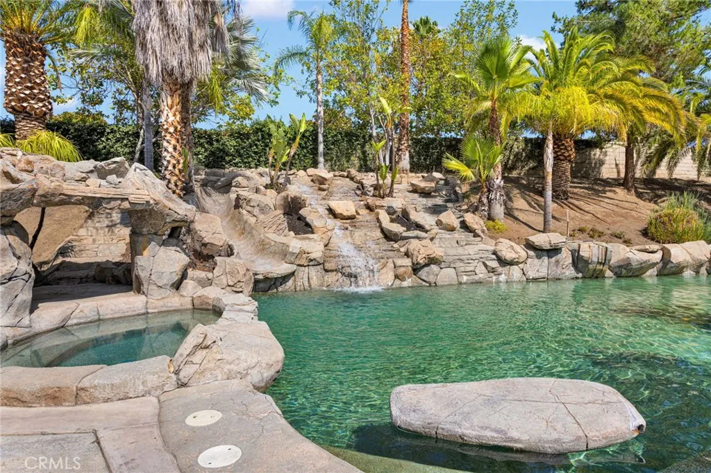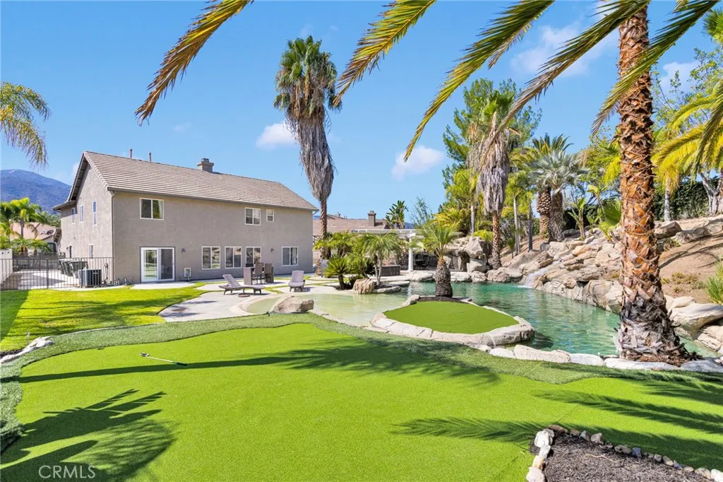Welcome to 479 Adirondack located in South Corona in the highly sought after Mountain Gate community. No HOA, low tax rate approximately 1.187%. With excellent school ratings, walking distance via back gate to Citrus Middle school, this incredible 2 story home offers a sprawling 3,530SqFt of living space on a .44 acre of land, 5 bedrooms 3 full bathrooms with a breath taking entertainers dream backyard. Sitting on just under 20,000sqft Lot, the front exterior is well maintained and tastefully designed with plenty of concrete, RV parking, gorgeous curb appeal adorned with birds of paradise and palm trees throughout. The backyard is sure to set a standard offering pebble stone pool, shallow area for kids and adult relaxation, multiple waterfalls, grotto, custom rock design, spa, putting green, built in bbq, detached patio, fire pit and more. Upon entry through the doubled doors, you are greeted with a vaulted ceiling with chandelier, formal dining room, living room and enter into the family room, spacious kitchen which offers plenty of granite counter top space, cabinets and wine rack. The main level offers a full bedroom, full bathroom a must have with multi generational living. 2nd level offers spacious master suite, his and her sink, walk in shower, bathtub and walk in closet. 3 full size bedrooms, upstairs office area with built in cabinets including a loft outside the guest bedrooms. This magnificent property checks off all the boxes, welcome home.