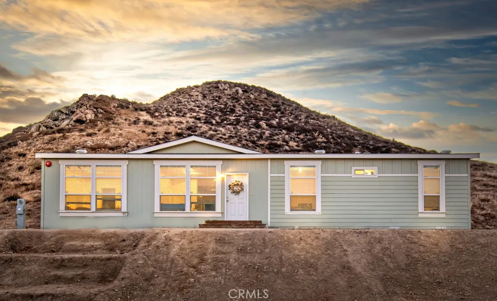 FANTASTIC INVESTOR OPPORTUNITY!!!! SELLER COULD NOT FINISH PROJECT AND HAS DEEPLY DISCOUNTED PROPERTY...THEIR LOSS IS YOUR GAIN!!! Check out this great opportunity to own part of Bell Mountain right in the heart of Menifee, California's fastest growing city! This barely lived-in manufactured home sits on 16+ spacious acres with views of the fields and mountains to the east and yet it is located mere minutes to shopping, schools and I-215 access. Featuring a spacious 4 bedroom floor plan, this 2 year old home has a very open great room with kitchen, large master bedroom with spacious bathroom, 3 other bedrooms located on the opposite end of the house and laundry. Access to the property is off of Garbani Road and it is set pretty far back making this location very secluded and private. There is plenty of room for parking all your toys and equipment...or whatever your plans happen to be. The 16 acres wraps around the summit of Bell Mountain and offers loads of hiking opportunities as well as room for addition structures. This property will likely need a buyer capable of completing a detached garage on-site in order to obtain a certificate of occupancy from the city of Menifee. Please inquire with listing agent for details about this and other items concerning this property.