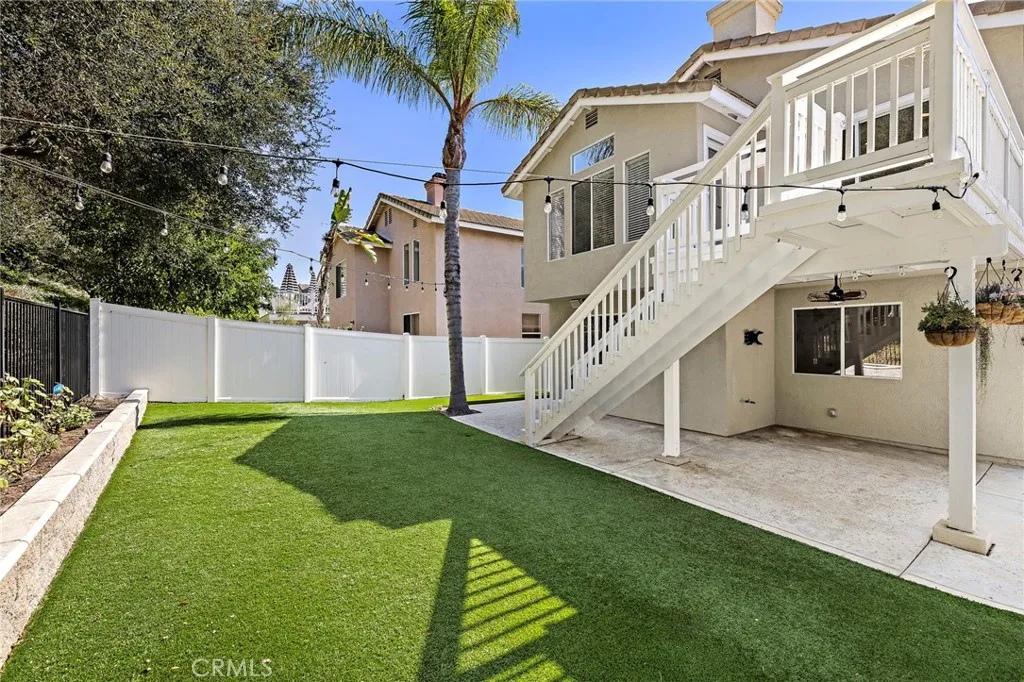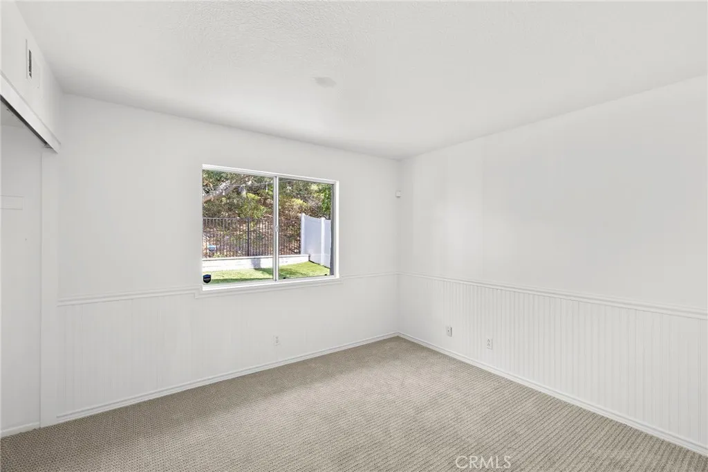 Located in the peaceful Wagon Wheel community, this home combines a serene natural setting with easy access to the 241 Toll Road, connecting you quickly to Irvines business district, Fashion Island, John Wayne Airport, and the coast. Residents of Wagon Wheel enjoy low HOA dues, no Mello Roos, and high-ranking schools within the Capistrano Unified School District. The main living level features an open-concept design with a spacious family room highlighted by a built-in entertainment center, dining area, powder room, and a remodeled kitchen. Bright white cabinetry, stone countertops, a designer backsplash, gas range, and refrigerator make the kitchen both stylish and functional. A sliding glass door opens to a private rear deck with stairs leading to the backyard. The primary suite on this level offers a spa-like bath with oak-style cabinetry, dual sinks, soaking tub, walk-in shower, and a large walk-in closet. The lower level offers flexibility with two secondary bedrooms, a full bath, a bonus room perfect for office, play, or media use, a laundry room, and direct garage access. Fresh new carpet has just been installed, making the home move-in ready. Set on one of the larger homesites in the neighborhood, the property offers a generous backyard with low-maintenance artificial turf and excellent privacy. Surrounding the community are numerous hiking and biking trails, playgrounds, picnic areas, and the expansive ONeill Regional Park. Shopping, dining, and services are just a short drive away in Mission Viejo, Ladera Ranch and Rancho Santa Margarita. Families will appreciate