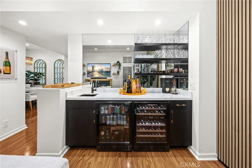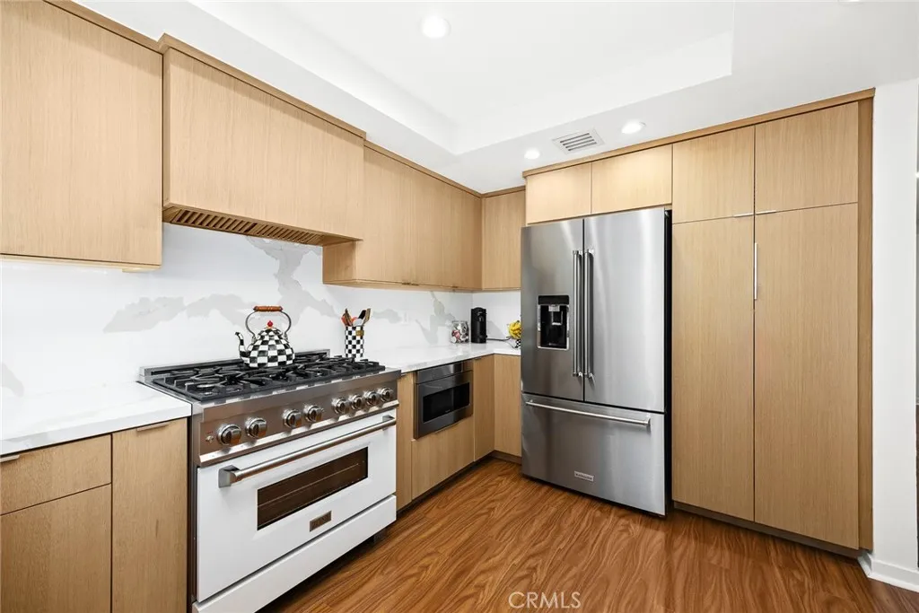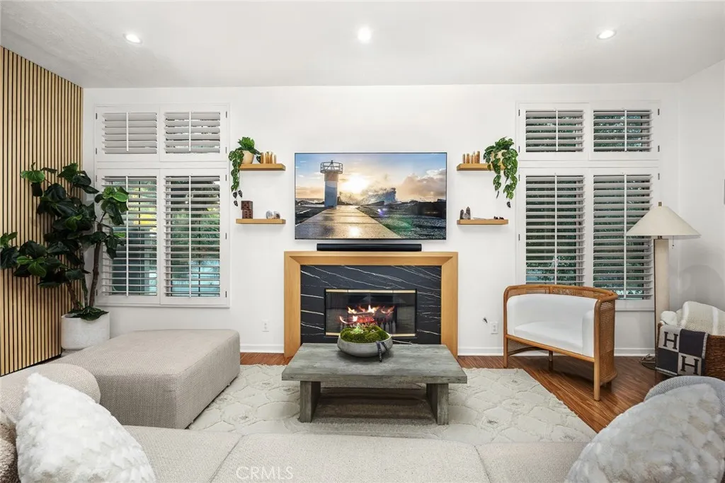 No Expense Spared in This Fully Renovated 3-Bedroom Townhome in Prime Location Beautifully upgraded 3-bed, 3-bath townhouse offering 2,003 sq ft of stylish living (plus approx. 300 sq ft lower level not included in recorded sq ft). Built in 1990 and fully renovated with luxury finishes, this rare end-unit shares only one common wall. Enter to soaring ceilings, a warm living room with fireplace, and an airy open feel. The main level is designed for entertaining with a wet bar, wine fridge, accent wall, designer powder room, and seamless flow between living, dining, family, and kitchen spaces. The gourmet kitchen features porcelain countertops, bar seating, custom cabinetry, hidden commercial-grade hood, and high-end stainless appliances, opening to a bright family room with oversized windows. Upstairs, the primary suite boasts vaulted ceilings, fireplace, his-and-hers walk-in closets, skylights, and a spa-inspired bath with heated floors. The lower level offers a private office/gym, laundry room with sink, and garage with Tesla charger and wall-to-wall cabinetry. Upgrades include custom window shades and all new windows. Prime location near Topanga Mall, The Village, Trader Joes, and top dining options.