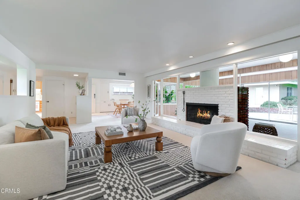 On the market for the first time in over 50 years, this beautifully designed and well-maintained mid-century home is a one-of-a-kind Pasadena treasure. Boasting natural light throughout, ample space for entertaining, character details, and close proximity to Caltech, Huntington Gardens, and South Lake Avenue, this residence offers the best of both classic charm and modern convenience. As you enter, the living room welcomes you with its striking brick fireplace surrounded by windows peeking into the sunroom just beyond. This dreamy room is the perfect place to entertain, relax, or work from home, with sliders opening to the back patio and a convenient tucked-away laundry room. The formal dining room accommodates both large parties and intimate gatherings and features a custom built-in sideboard & cabinetry for your china and glassware. The kitchen provides abundant counter space, plentiful cabinetry, dual ovens, a prep sink, and a sun tunnel that fills the space with light. On the east wing, two guest bedrooms with large closets provide flexibility for restful retreats, a home office, or space for hobbies, while the primary suite offers an ensuite bath featuring a separate shower and tub. Outside, enjoy an oversized patio ideal for dining al fresco, a large grassy yard with privacy hedges, and a detached two-car garage with workshop. Don't miss this rare opportunity in one of Pasadena's most prestigious neighborhoods.