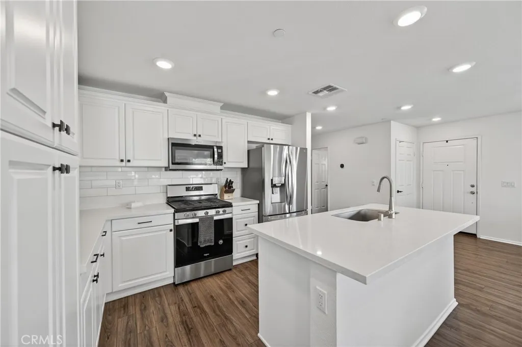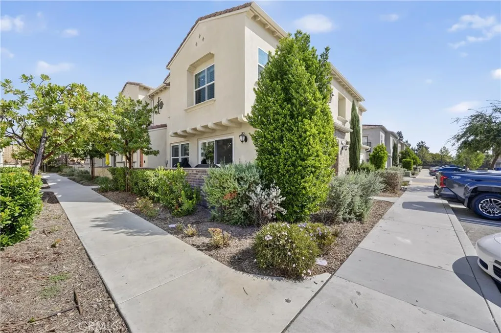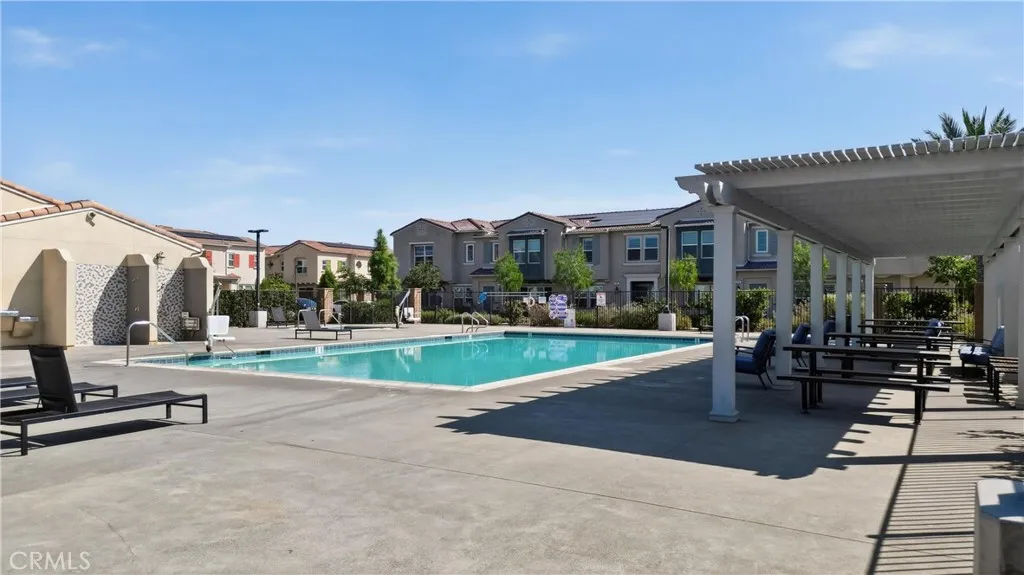 Fontana Gated Community! Welcome to 7155 Citrus Ave, Unit 411. This original owner model-like end unit condo offers 3 bedrooms, 2.5 bathrooms, and 1,687 sq. ft. of modern living space. Located in a secure community with low HOA fees, right across from the pool and spa. Interior highlights include upgraded flooring, quartz countertops, recessed lighting, wood shutters, custom shading, and a stylish backsplash with stainless steel appliances. The primary suite features a spacious bathroom and large walk-in closet. The additional two bedrooms and spacious loft offer flexibility for family, guests, or a home office, making this home ideal for todays lifestyle needsalong with a laundry room conveniently located upstairs for even more comfort. The garage includes epoxy flooring and an EV charger. This home also comes equipped with solar for energy efficiency. The community provides resort-style amenitiespool, clubhouse, sports court, parks, and walking pathsplus convenient access to Victoria Gardens shopping, dining, and freeways. Truly move-in ready!