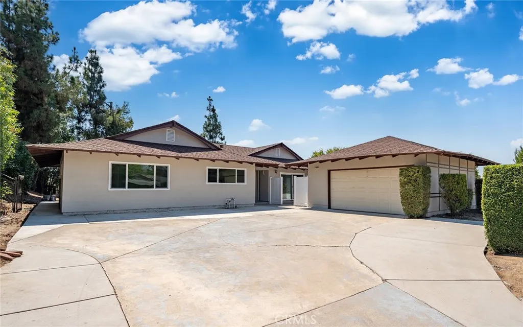 A 4 bedrooms 3 bathrooms single family house situated on a 13,153 square foot flat lot. The house is in a cul-de-sac and quiet neighborhood with only cul-de-sac traffic. From the street you see the front of the house with a huge parking area and the detached 2-car garage with its driveway and a courtyard. The house has just been completely renovated from floor to ceiling. New interior and exterior painting, new plumbing, new breaker box, new wiring, a brand new kitchen with all new appliances (refrigerator, dishwasher, stove, oven, windows, exhaust, counters, cabinets), new air conditioner, new heating unit, new water heater. A big backyard with a huge covered patio great for entertaining. There is a huge wood burning stone fireplace in the living room. Schedule your showing with the listing agent or come to the open house. Do not use Showing Time.