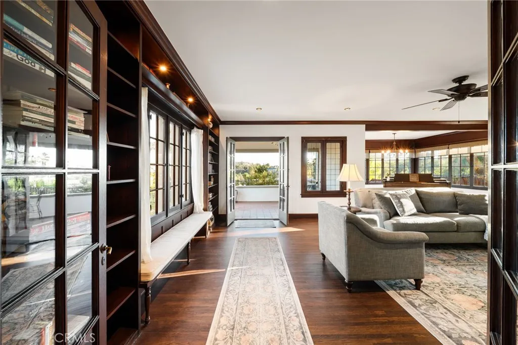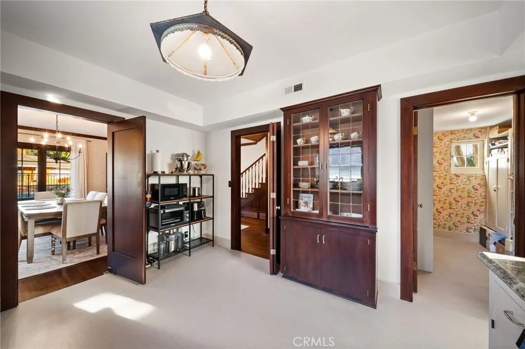 Carlton Place Once home to Riverside scholar Robert P. Anderson, this enchanting Tudor Revival residence was built in 1925 at the height of the Roaring Twenties. Designed with distinction and crafted with luxury in mind, the home commands a subtle, elevated corner lot with sweeping views of the famed Victoria Club. The landscaped grounds are a true delight, with graceful white crape myrtles, Chinese elms, and a stately jacaranda tree. Along the hillside, vibrant yellow bougainvillea, blue plumbago, and lantana intermingle with classic white roses, creating year-round beauty. The quarter-acre lot is fully fenced, offering privacy with neighbors on only one side. As one of Riversides rare through lots, the property provides versatile space for guest parking, RV storage, an ADU, or even a pool. Inside, the home retains its timeless character while offering thoughtful updates for modern living. The floor plan reflects the purposeful design of the periodeach space created with function, comfort, and charm. Recent renovations have been completed with a keen respect for the homes heritage, blending original details with carefully chosen upgrades. Enhancements include: a newer roof, dual-zoned HVAC with heat pump, new plumbing and electrical systems, upgraded 200-amp panel with EV charging, water softener, newer water heater, and insulation throughout. The interiors feature refinished hardwood floors, restored architectural paneling, original windows and doors, tastefully remodeled bathrooms, and a beautifully updated kitchen. The primary suite boasts heated bathroom floors and a
