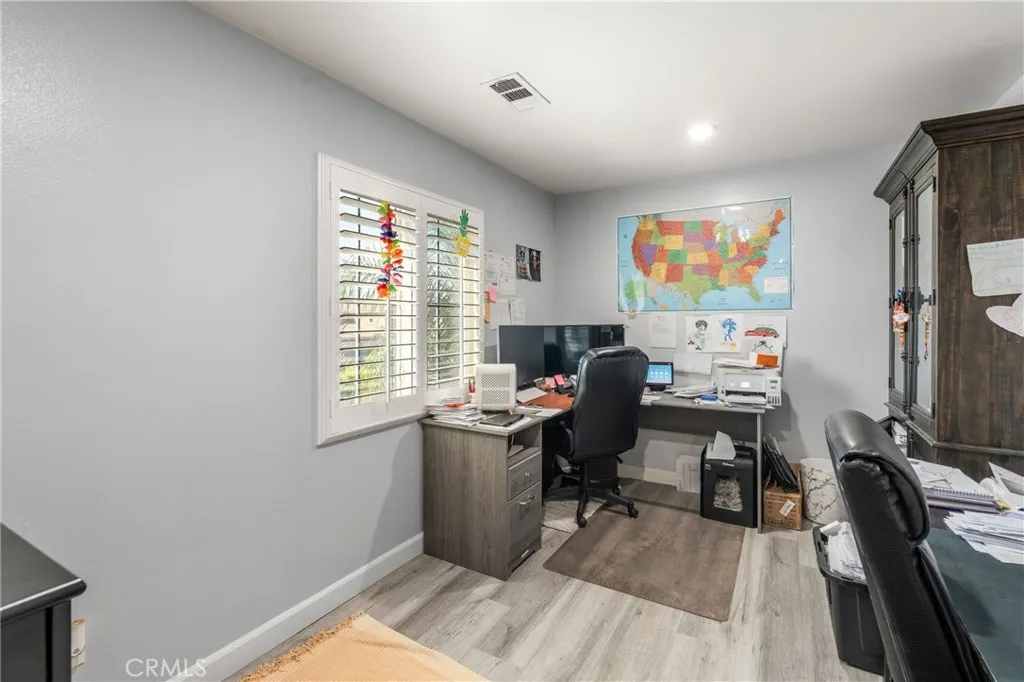 Stunning 5 bedroom, 3 bathroom home offering 2,420 sq ft of refined living space. This well-maintained residence features an attached two-car garage on a 4,068 sq ft lot with front and rear yards and rear sprinklers, all located in a family-friendly neighborhood known for excellent schools, parks, and convenient amenities. The main level includes a bedroom and full bathroom for flexible use, while the upstairs primary suite provides a tranquil retreat with a walk-in closet. Interiors showcase a bright, open floor plan with no shared walls, central heating and cooling for year-round comfort, and a practical laundry setup on the upper level. The kitchen comes equipped with a gas range, microwave, dishwasher, and disposal. A leased solar panel system is included and will need to be assumed by the new owner; please review lease terms and transfer details with your agent. The whole house features a LifeSource water filtration system, and the garage is equipped with a lift-up/down metal screen door installed. This home combines modern efficiency with thoughtful design, creating a welcoming environment for families. Easy access to quality schools, nearby parks (including a community park with a dog park located just 350 ft away), and kid-friendly amenities, all within a comfortable, private living space.