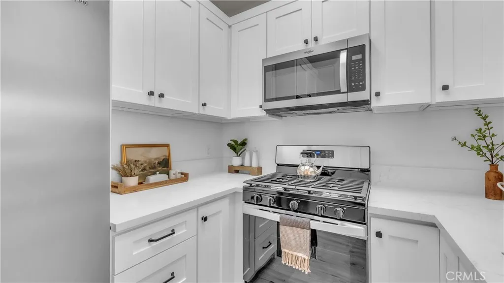 Special Financing Available on this condo! Westside Living at its best in this Fully Remodeled Westchester condo. This unit is open and bright with natural light flowing through the open courtyard through the huge picture window, filling up the spacious and open living room. The living room also features a comforting fireplace and 10' ceilings. The kitchen is beautiful with brand new custom-made white shaker cabinets, paired with black hardware and quartz countertops with an overhang for additional bar stool seating. Just off the kitchen is a dining area and a pantry closet. To top it off, there are brand new Whirlpool stainless steel appliances that will transfer to the lucky new buyer. The primary suite has vaulted ceilings, 3 separate closets, a sitting area next to the fireplace and a fully remodeled en suite bathroom. The 2nd bedroom is spacious with tree top views out of the window. In the hall is a laundry closet with hookups for a stackable washer and dryer. This home also has central heating, A/C, and double paned windows. You also receive 2 tandem parking spaces in the gated secured parking garage. HOA Amenities include a fitness room and Jacuzzi.