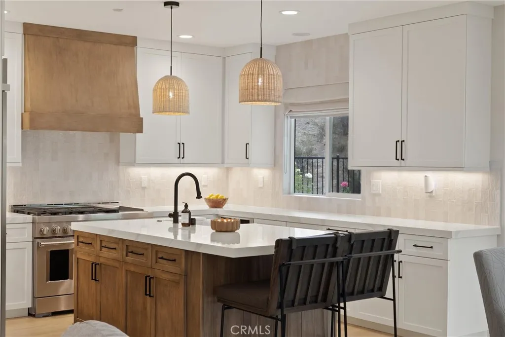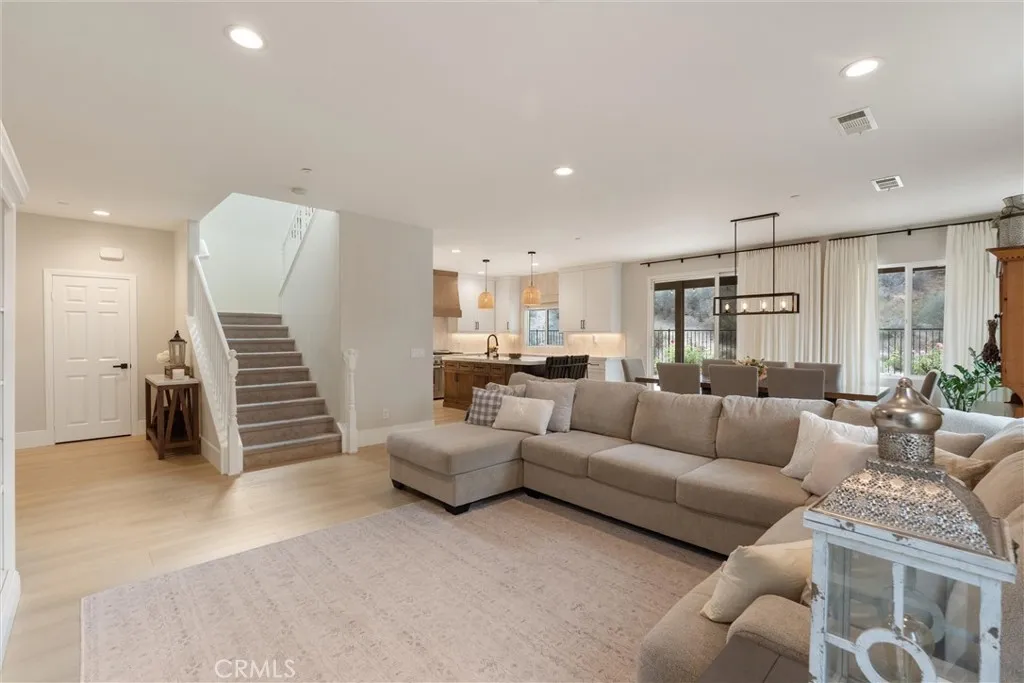 Welcome to your forever home in the heart of Plum Canyons scenic and vibrant community! Perfectly set at the end of a quiet cul-de-sac, this stunning Echo Point residence blends privacy, comfort, and modern efficiency. Surrounded by rolling hills, this 4-bedroom, 3-bath retreat with a versatile loft offers the perfect balance of serenity and community in one of Santa Claritas most desirable neighborhoods. Step inside to rich wood flooring that flows through the entry, living, & dining areas, creating a warm and inviting atmosphere. Soft pleated linen drapes frame the windows and invite abundant natural light, adding elegance and charm throughout. At the center of the home is a fully renovated chefs kitchen, designed for both everyday living and effortless entertaining. Jewel-toned wall tiles accent quartz countertops with soft gray veining, while a farmhouse sink and rattan pendant lights add timeless character. Premium KitchenAid appliances-including a microwave drawer, professional 6-burner stove with double ovensmake cooking a delight. A spacious island, abundant cabinetry, walk-in pantry, & touchless faucet combine beauty with convenience. The kitchen opens seamlessly to the family room with recessed lighting, creating a true great room for gatherings. Step outside to a full-width custom covered patio with hillside views-the perfect setting for BBQs, summer evenings, & weekend relaxation. The backyard retreat also features stamped concrete walkways, a gazebo, & low-maintenance landscaping for year-round enjoyment. The versatile floor plan includes a full bedroom & bath