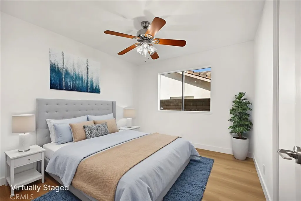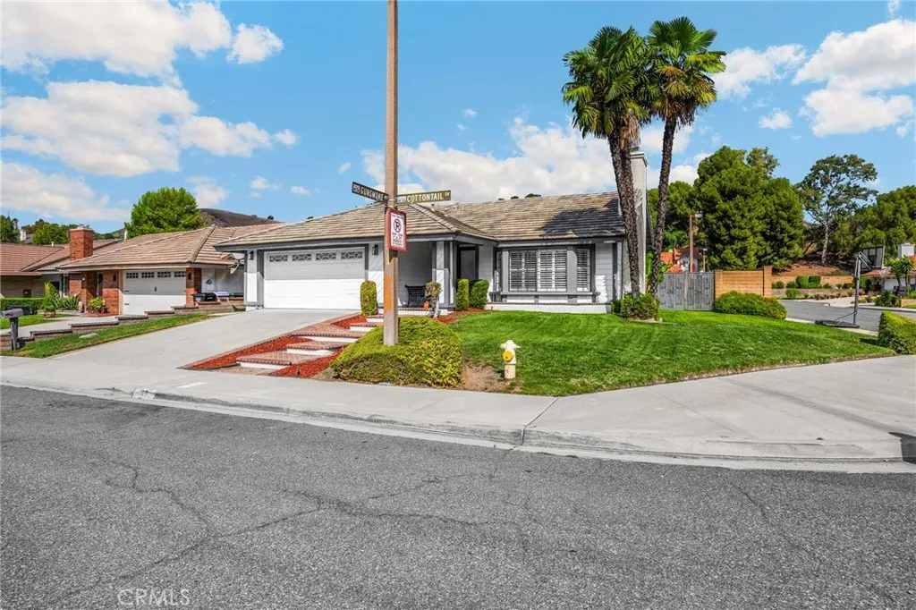 Phillips Ranch Single-Level Beauty! Welcome to this tastefully upgraded 4-bedroom, 2-bathroom, family room, single-family home in the highly desirable Phillips Ranch neighborhood of Pomona. Nestled on an expansive 7,663 sq ft interior corner lot adjacent to a cul-de-sac, this 1983-built residence offers 1,810 sq ft of single-level livinga sought-after layout perfect for comfort and convenience. Highlights & Features: Inviting Curb Appeal: Tasteful brick-patterned porch & steps, fresh exterior paint, tile roof, expansive lawn areas, and double-gate access to the rear yard. Freshly Updated Interiors: NEW lighting fixtures, light plank-style vinyl flooring, and fresh interior paint. Elegant Entry: Marble flooring with a sleek chrome light fixture. Living & Dining Areas: Vaulted ceilings, bay-style windows with shutters, and a cozy brick fireplace. Chefs Kitchen: Quartz counters, extended garden window, peninsula with breakfast bar, recessed lighting, five-burner stove, modern refrigerator, and double-door pantry. Family Room: Vaulted ceiling, ceiling fan, plank flooring, and sliding glass door opening to the backyard with a covered patio and lush lawn. Bedrooms: Three secondary bedrooms with ceiling fans and double-door closets; spacious primary suite with vaulted ceiling, sliding glass door to patio, mirrored wardrobes in the bedroom and primary bath. Bathrooms: Stylishly updated with reglazed tub & shower, barn-style glass shower doors, Hall bath with new vanity, mirrors, and recessed lighting, and modern plumbing fixtures. Primary Bath with separate toilet room, dou