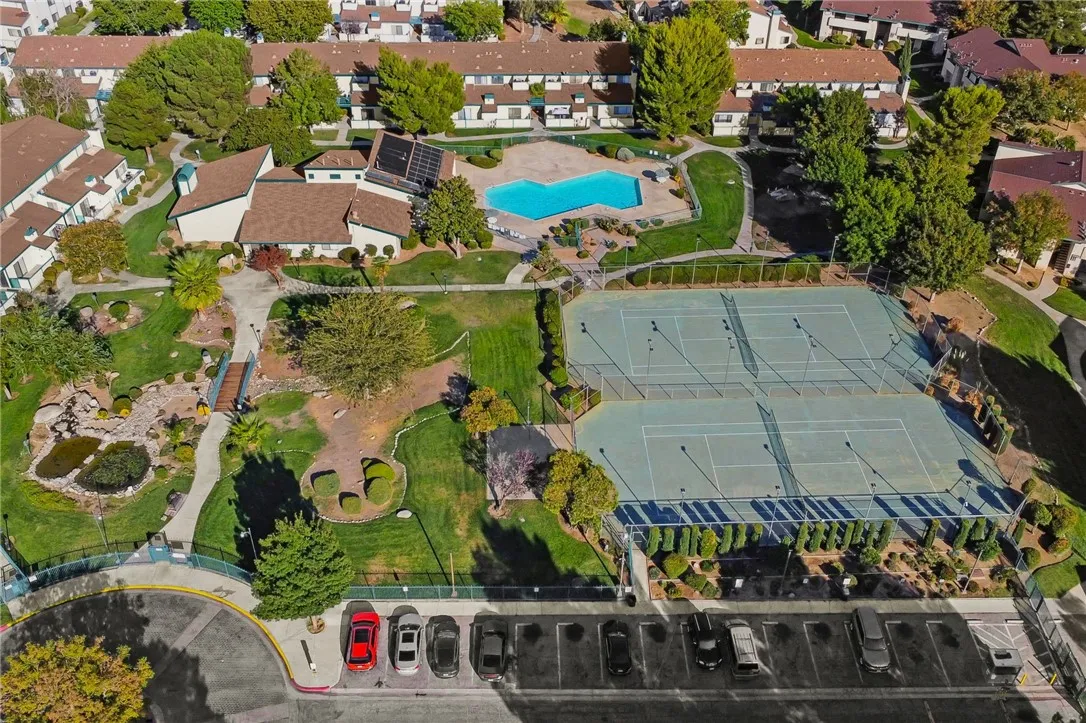 A charming 2-bed, 2-bath home in the gated Willow Creek community. Offering just over 1,050 sq. ft. of living space, this residence features an open layout with vaulted ceilings, a cozy fireplace, an in-unit laundry area, and a private patio. The primary bedroom with en-suite bath is upstairs, while the second bedroom and bath are on the main floor, perfect for flexible living. A detached 2-car garage provides secure parking and storage. Residents enjoy access to resort-style amenities including a clubhouse, swimming pool, spa, and tennis courts, all surrounded by landscaped grounds. Conveniently located near shopping centers, Antelope Valley College, Antelope Valley Hospital, and major commuting routes, this home offers both comfort and accessibilityideal for first-time buyers, investors, or anyone seeking a low-maintenance lifestyle with great amenities.