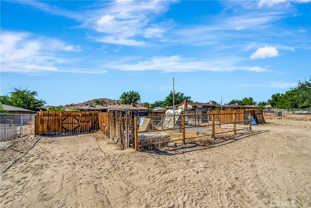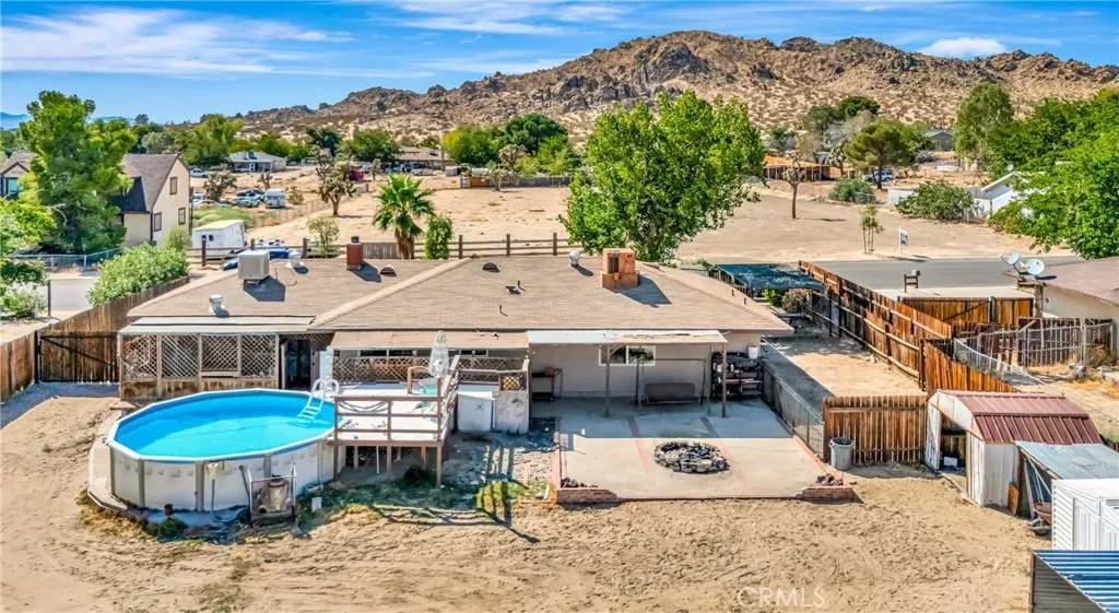 Pride of ownership is apparent as this lovely single story home is being sold by its original owner and offering over 1,100 sq. ft. of comfortable living space!! Inside you'll find 3 spacious bedrooms with the master having its own en suite, 2 full baths, a beautifully updated kitchen with pretty gray cabinetry, granite counters with tile accents, upgraded stainless steel appliances, and a charming dining room area!! Newer dual pane windows throughout with unique ceramic tile floors and wood flooring in one of the bedrooms complemented by gorgeous new fresh interior and exterior paint!! You are sure to love the real brick wood burning fireplace too for those cool winter evenings!! There is also central air/central heating along with a window evaporative cooler to save money in the summer!! The property sits on nearly 30,000 sq. ft. of flat, usable land zoned for horses tremendous curb appeal with a fully fenced wrought iron privacy fence with gate in the front yard and courtyard area along with fully fenced chain link and cross-fencing in the backyard!! The front yard boasts mature landscaping, grassy areas, and palms, while the backyard features a covered patio, storage sheds, and plenty of space for horses!! An above-ground pool with pump and filter provides the perfect spot to relax, while the 2-car garage with laundry area adds everyday convenience!! This home truly offers it all comfort, charm, and endless possibilities on a rare oversized lot!! Hurry to go see this special home today before it is sold!!