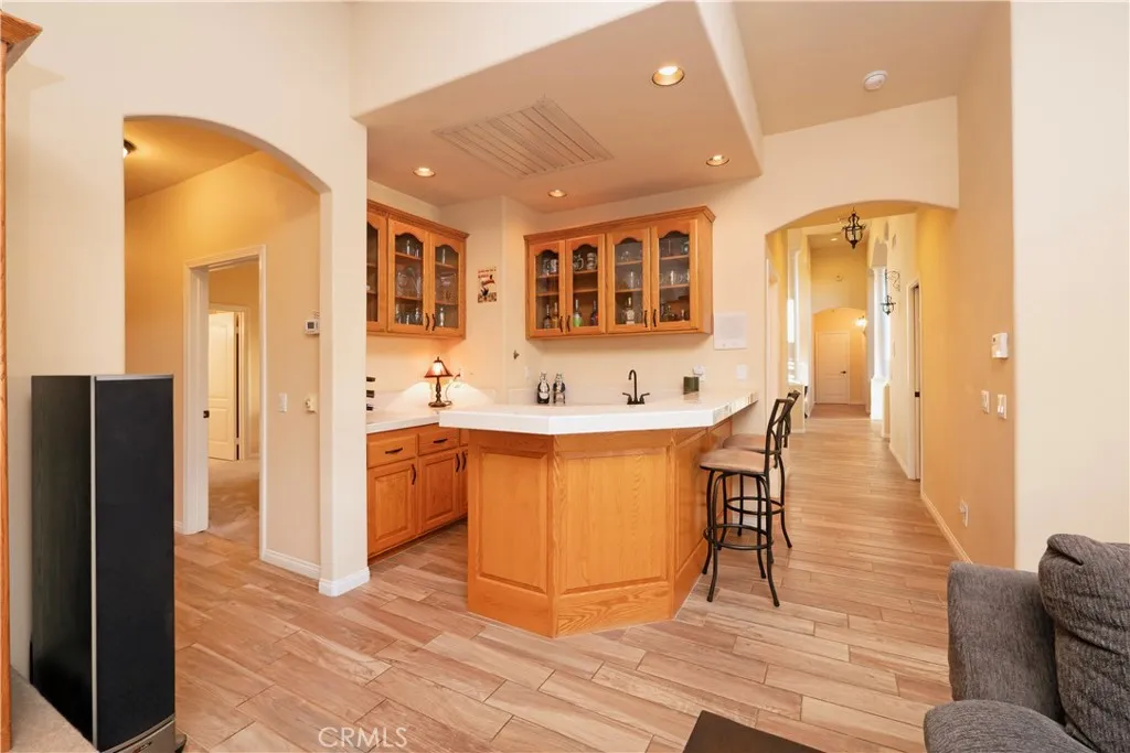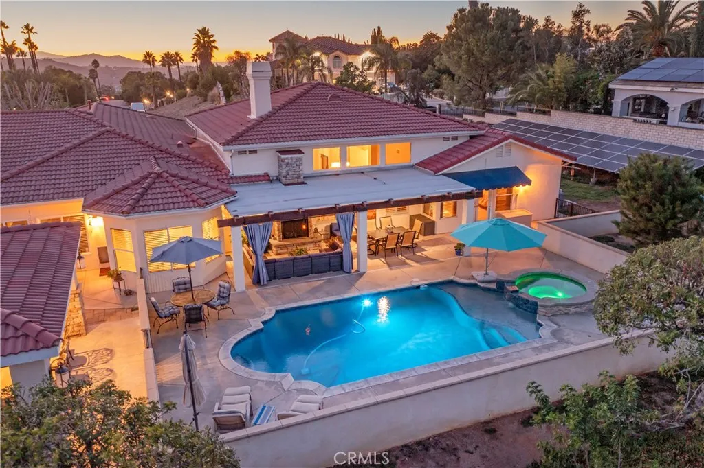 Welcome to your dream homea beautifully custom-built, single-level residence set on a sprawling 39,000 square foot lot. Enjoy ultimate privacy as the property backs onto an open flood control area with no possibility of future construction. Step inside to discover an expansive open floor plan designed for both comfort and elegance. The home boasts 3,964 square feet of living space, featuring a spacious living room, family room, and formal dining roomall highlighted by stunning vaulted ceilings. Ideal for multi-generational living, two primary bedrooms each offer newly renovated en suite bathrooms, while two guest rooms share a convenient Jack and Jill bathroom. The gourmet kitchen is a chefs delight, complete with a service island and seamless flow into the family room for informal gatherings. The formal living and dining rooms provide sophisticated spaces for special occasions. Additionally, there is an outdoor fireplace located on the covered patio, providing a cozy gathering space for relaxing in the fresh air. Entertain and relax in your resort-style backyard. The resurfaced saltwater pool and spa invite endless enjoyment, while the newly built outdoor kitchen cabana is perfect for hosting friends and family. Enjoy movie nights with the cabana's projection screen and sound system or unwind in the private gazebo. Every space is thoughtfully designed to enhance your lifestyle and maximize privacy. For your vehicles and hobbies, the property features two attached two-car garages and a remarkable detached 30x 50 RV garage complete with a half bathroom and full hook ups. Ful