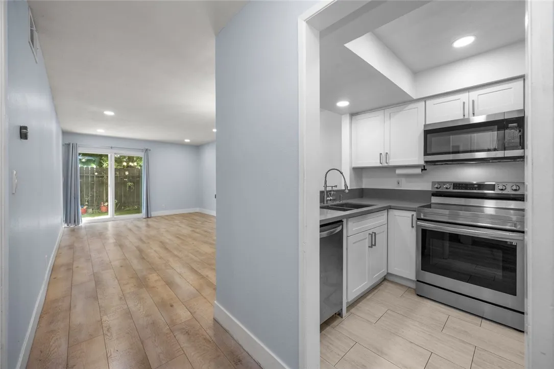 Elegant 1-Bedroom Condo in Wilshire Westmont Anaheims Hidden Gem Presenting an exceptional opportunity at 278 N Wilshire Ave, Unit A10 in the prestigious Wilshire Westmont gated community. This well-loved 1 bed / 1 bath home spans approximately 682 sq ft and was built in 1973, blending vintage charm with modern enhancements. Step inside to find wide-plank laminate flooring, recessed lighting, and tasteful finishes throughout. The kitchen is a standout, equipped with stainless steel appliances, quartz countertops, and shaker cabinetry ideal for both everyday cooking and entertaining. The bedroom features generous closet space including a walk-in closet which is bathed in light. The bathroom has been upgraded with contemporary touches, including quality fixtures and tile work. The living room opens to your private back patio, perfect for relaxing, grilling, or catching fresh air. Community perks are strong: enjoy a resort-style pool, spa/jacuzzi, clubhouse/rec room, gated access, and on-site laundry. One subterranean parking space is included, with extra storage available. The Location is unbeatable: Less than a mile from Disneyland, with easy access to major freeways (5 & 91). Minutes to shopping, dining, and entertainment. Near the The Colony area, offering a balance of serenity and city connection. This condo is move-in ready and designed for those who value style, comfort, and convenience. Dont let this offering in Wilshire Westmont pass you by schedule your private showing today!