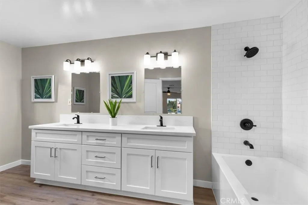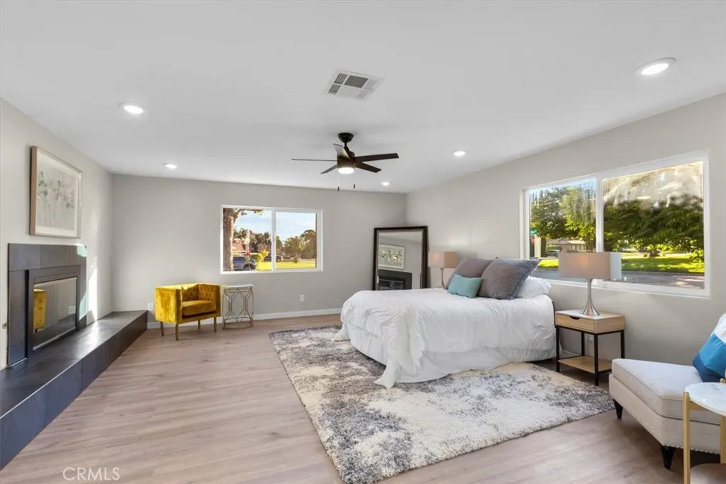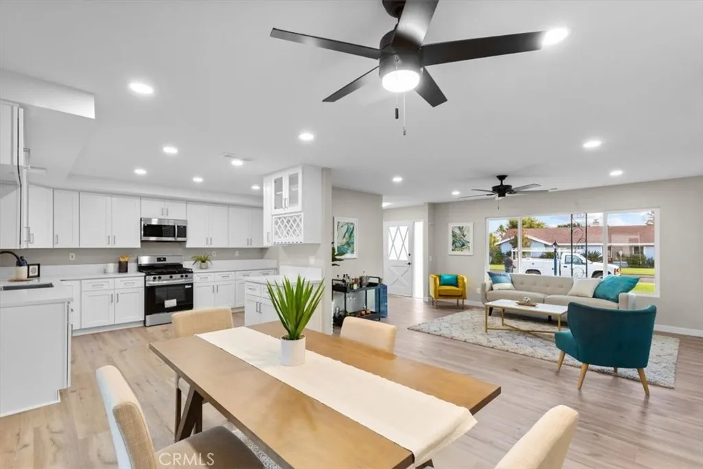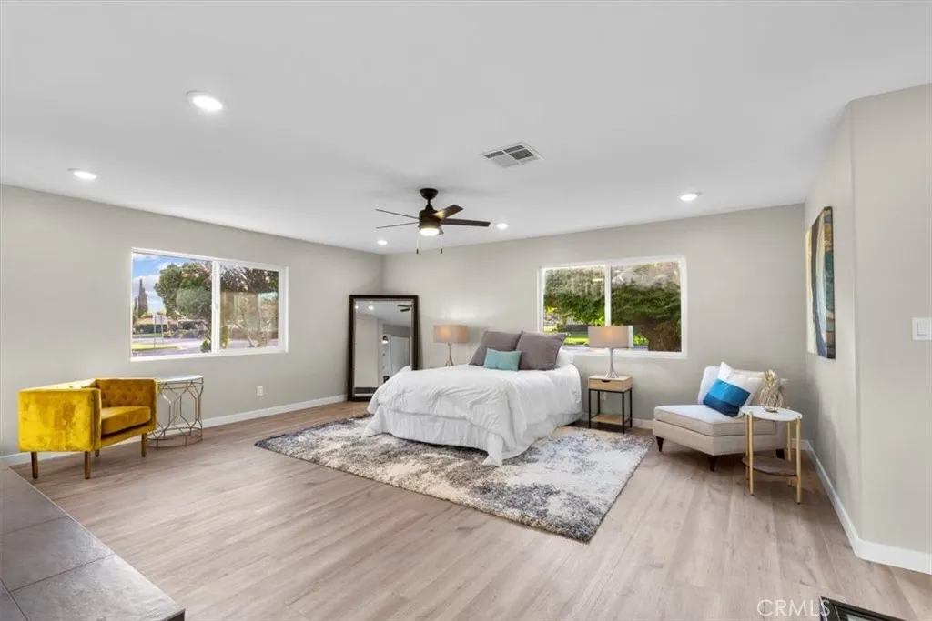 Fully Remodeled Single-Story Rialto Pool Home! This beautifully updated ranch-style home sits on a generous corner lot and offers four bedrooms and three full bathrooms, including a spacious primary suite and a second en suite bedroom thats perfect for guests or multi-generational living. Step inside to a modern, open interior featuring new dual-pane windows, high-quality laminate flooring, fresh fixtures, and a reimagined kitchen with new cabinetry, quartz countertops, stainless steel appliances, and plenty of prep space. The kitchen flows seamlessly into the dining and living areas, creating an inviting space for entertaining or relaxing. The primary suite is a true retreat, complete with his-and-hers walk-in closets, a cozy fireplace, and a spa-like bathroom with dual vanities, a soaking tub, and a separate shower. From the dining area, a new sliding glass door opens to a covered patio that overlooks your own private backyard with a sparkling pool and spa. One secondary bedroom includes its own beautifully upgraded bathroom, while the remaining bedrooms offer flexibility for a home office, gym, or additional family members. The backyard is designed for enjoyment, with a spacious patio and plenty of room to entertain under the sun. The home also includes a 15-panel solar system with a low assumable lease, helping reduce energy bills year-round. Located in the Rialto Unified School District, this home also offers convenient access to shopping and dining, including nearby favorites at Renaissance Marketplace like CAVA, California Fish Grill, and Norms, along with everyday e